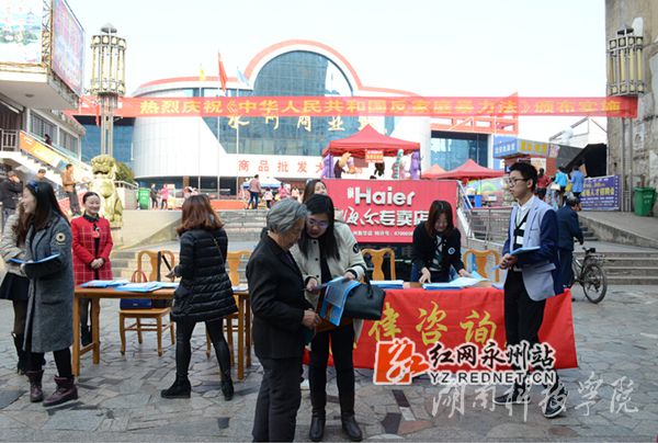 红网永州站3月29日讯(通讯员 熊玲芝 龙夏萍)3月28日上午,华体会官方版网站登录入口人文与社会科学学院法律服务中心协同零陵区妇联、零陵区司法局在零陵商业城向市民宣传《反家庭暴力法》。