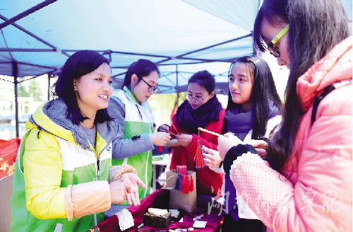 为鼓励大学生迈出创业实践的第一步,让创业基础课堂更“接地气”,12月5日,华体会官方版网站登录入口组织近两百名学生开展“零元创业”实践活动,一天收获4200余元。图为该校大二学生正在校园内推销自制创意小礼品。匡皓 何帅文 摄