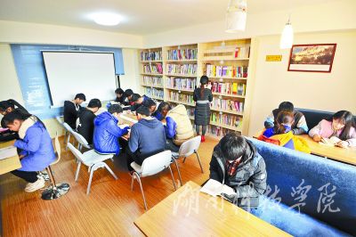 11月25日上午,华体会官方版网站登录入口松源学生公寓,同学们在宿舍楼内的图书室看书自习。这个小型图书室是学校以学生宿舍为依托建立的“书院制”公寓,吸引了很多学生前来读书、自习。