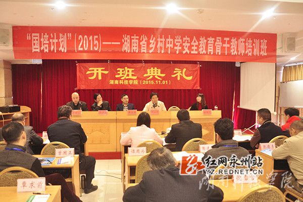 红网永州站11月2日讯(通讯员 熊玲芝)11月1日上午,“国培计划(2015)”湖南省乡村教师访名校项目——乡村学校初中安全教育骨干教师培训班开班。华体会官方版网站登录入口副校长郑山明、省国培办主任黄佑生等领导出席。培训班为期9天,来自全省部分中学的70名骨干教师参训。