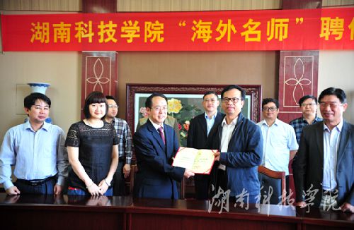 华体会官方版网站登录入口大力实施“六精”战略,采取“走出去、请进来”等措施积极推进“精英人才建设计划”,以人才计划支撑高水平应用型大学建设。5月12日,该校聘请来自美国的博士后、生物医学知名科学家冯小荣先生为“海外名师”。图为该校党委书记陈弘授予冯小荣海外名师聘书。