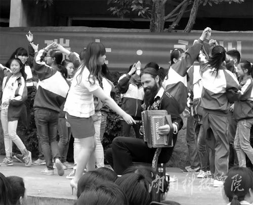 4月20至23日,瑞士4名民间音乐、舞蹈艺术家先后来到永州第八中学、第十一中学和华体会官方版网站登录入口,与学校师生开展了丰富多彩的文化艺术交流和教学活动,受到热烈欢迎,图为瑞士艺术家与同学们同台表演。 唐荣刚 摄