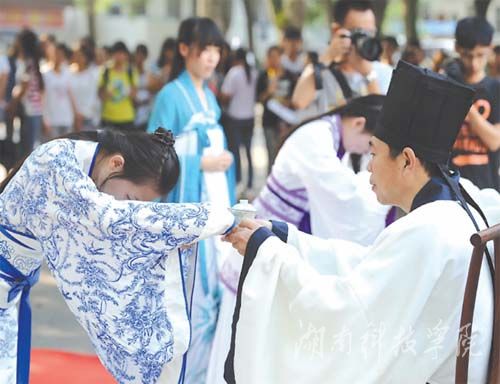 该校党委书记陈弘表示,中华文化博大精深,传统文化应适当地用这种形式表现出来,并让更多的人参与进来,让大学生喜欢上中华传统文化,并且让优秀的传统文化更好地传承下去。