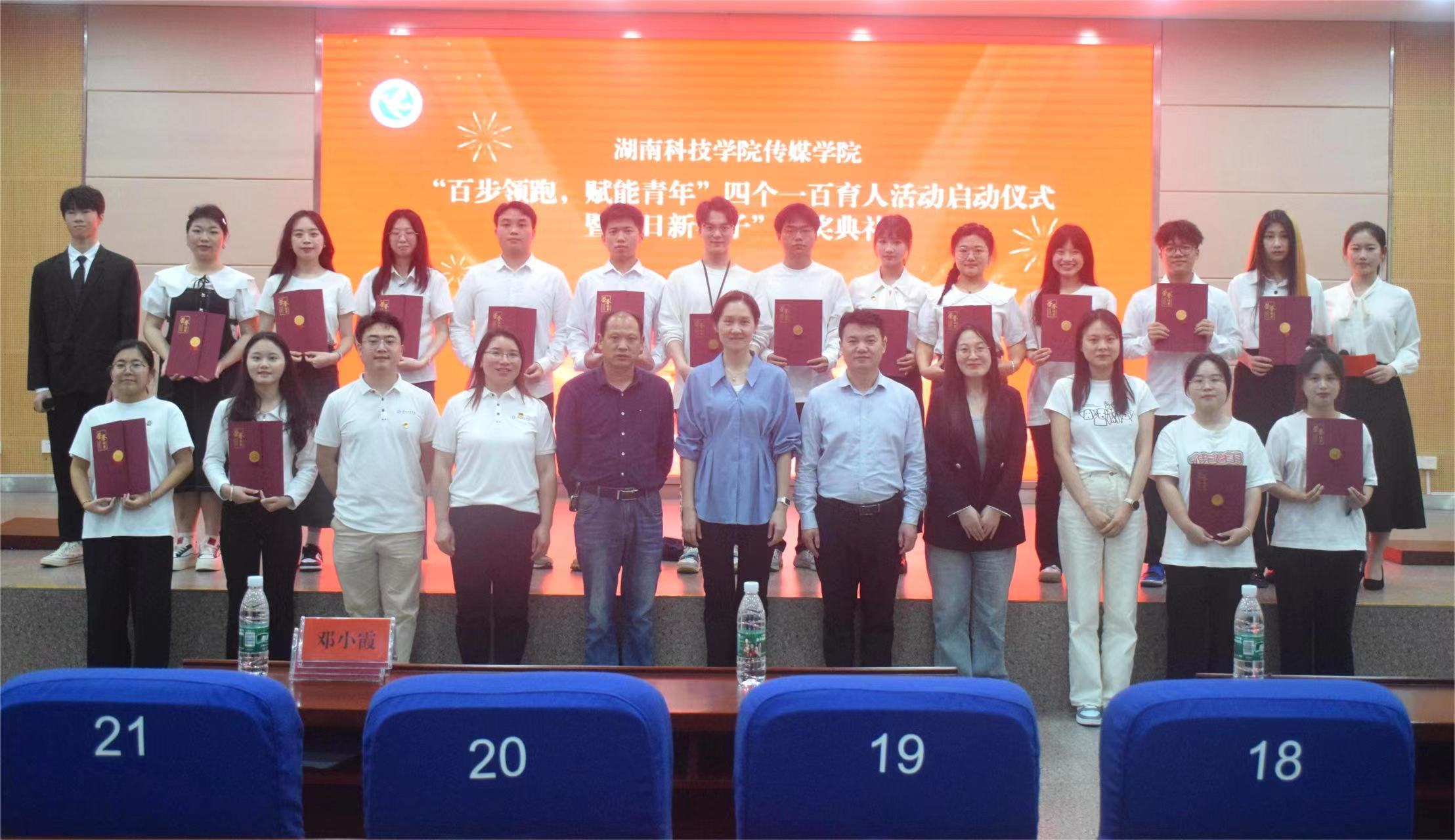 本网讯(通讯员 蒙祥乐 苏济炜 丁浩典)4月23日晚,传媒学院在潇湘大讲堂举行“百步领跑,赋能青年”四个一百育人活动启动仪式暨“日新学子”颁奖典礼,各年级辅导员、大一大二全体学生共同参加。