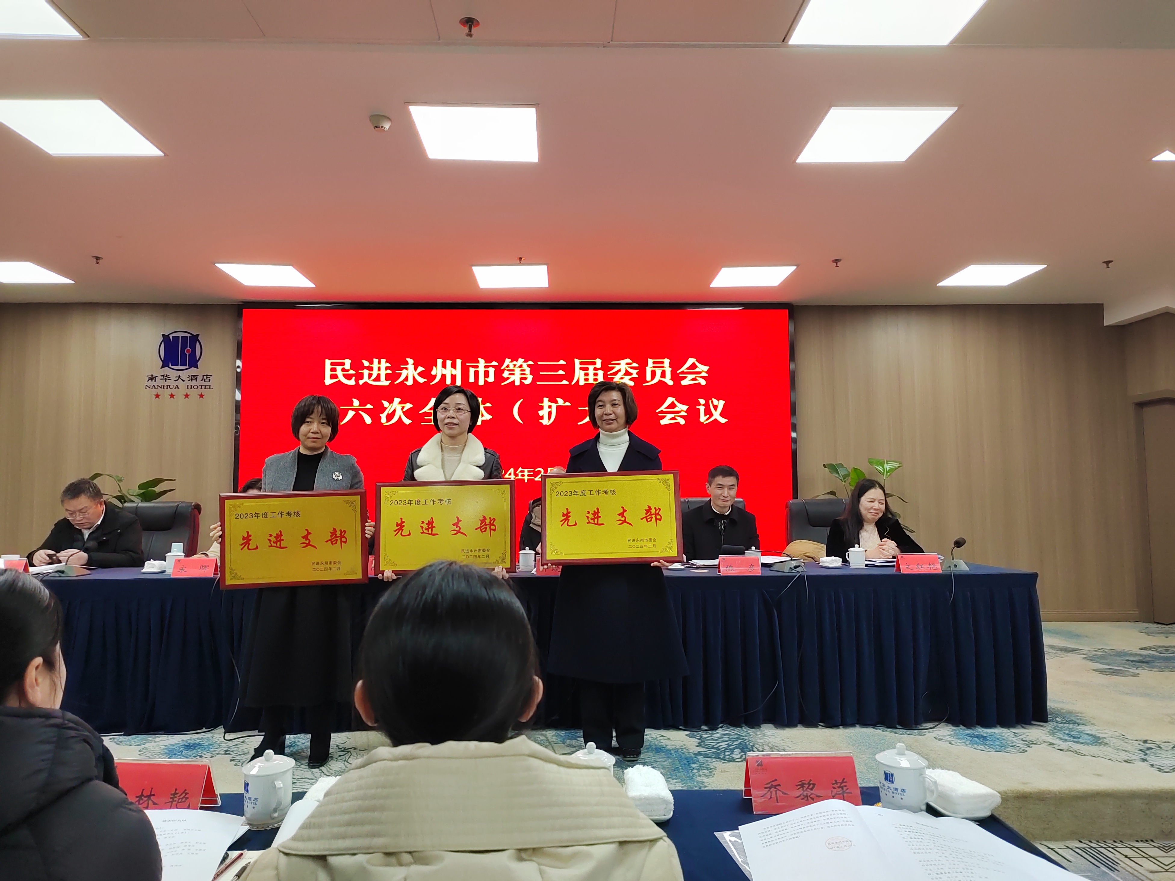 本网讯(通讯员 李焕品)2月29日上午,民进永州市委会三届六次全体(扩大)会议在冷水滩举行。民进华体会官方版网站登录入口支部在2023年度市委会支部考核中位居第一,被评为先进支部。何丽萍被评为社情民意信息工作先进个人,李焕品被评为优秀会务工作者,王豪才、包红光、李小雨、蒋玮玮被评为优秀会员,包红光作为优秀代表发言。