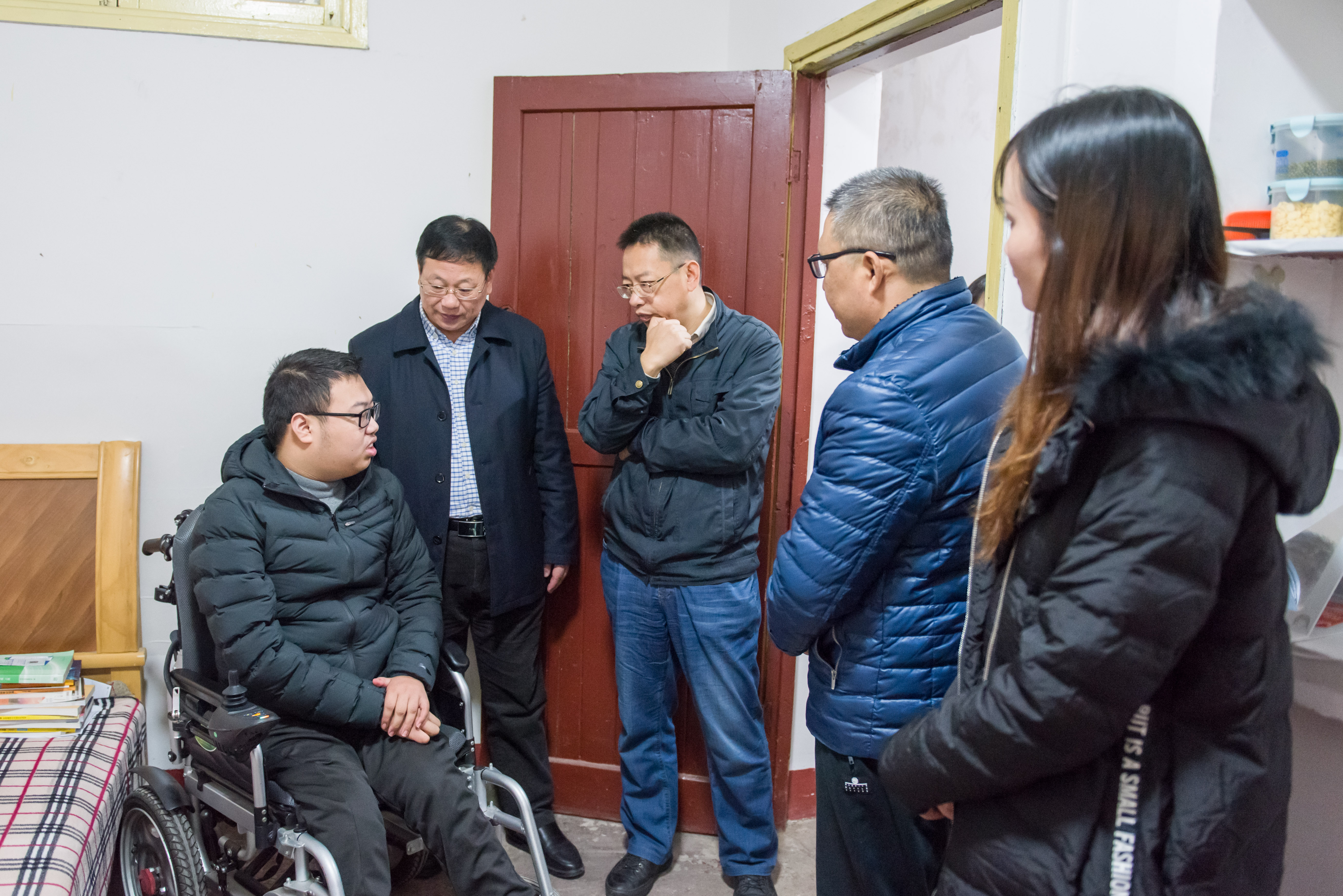 本网讯 11月29日,省残疾人联合会维权部长吴斌来校看望慰问困难学生黎际勤。学工部长唐华山、电子信息工程学院相关负责人的陪同前往。