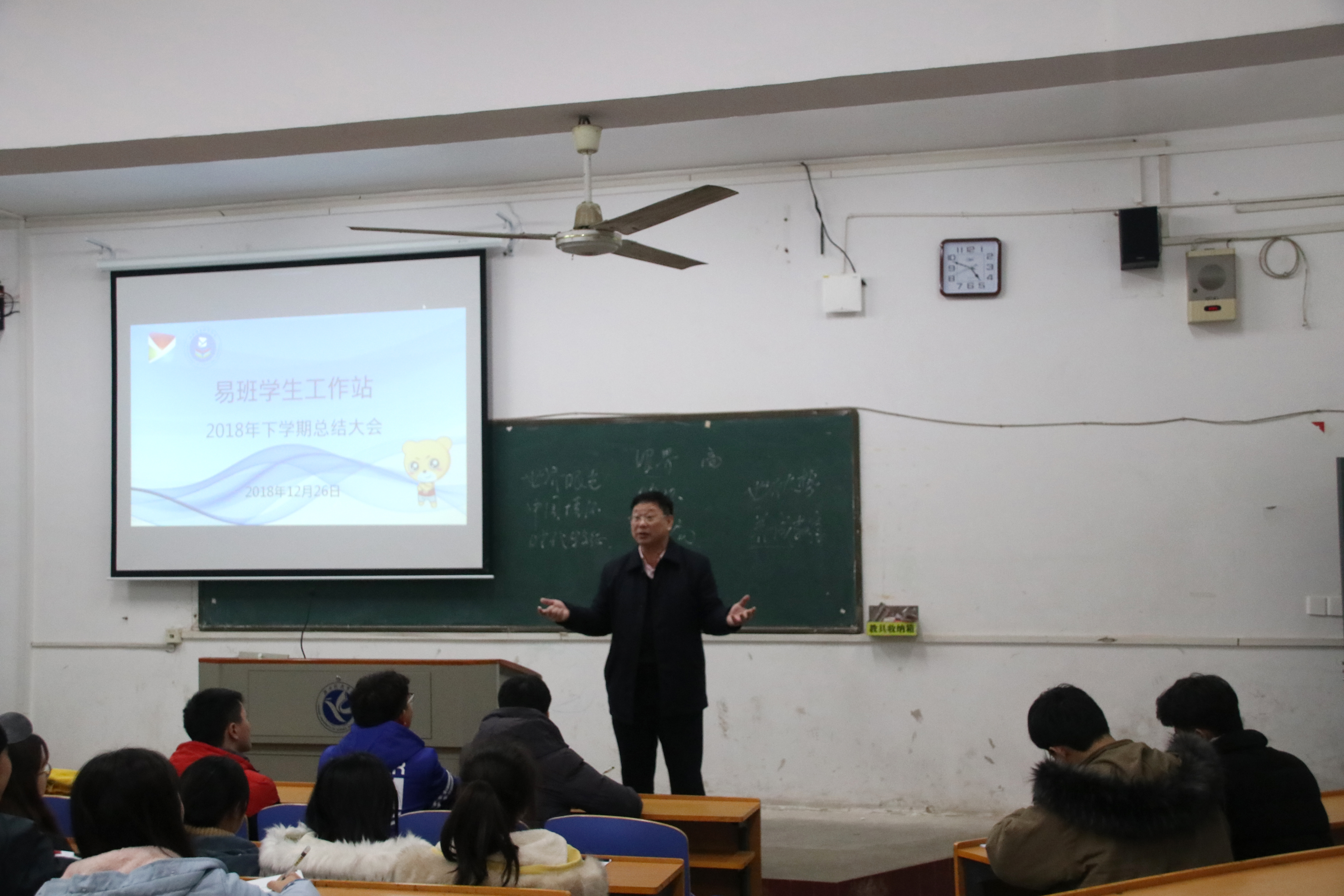 本网讯  为进一步推进我校易班建设工作,更好的总结经验、规划发展,12月26日上午,校易班学生工作站在明德楼召开总结大会。学工部长唐华山以及易班学生工作站全体成员参加会议。