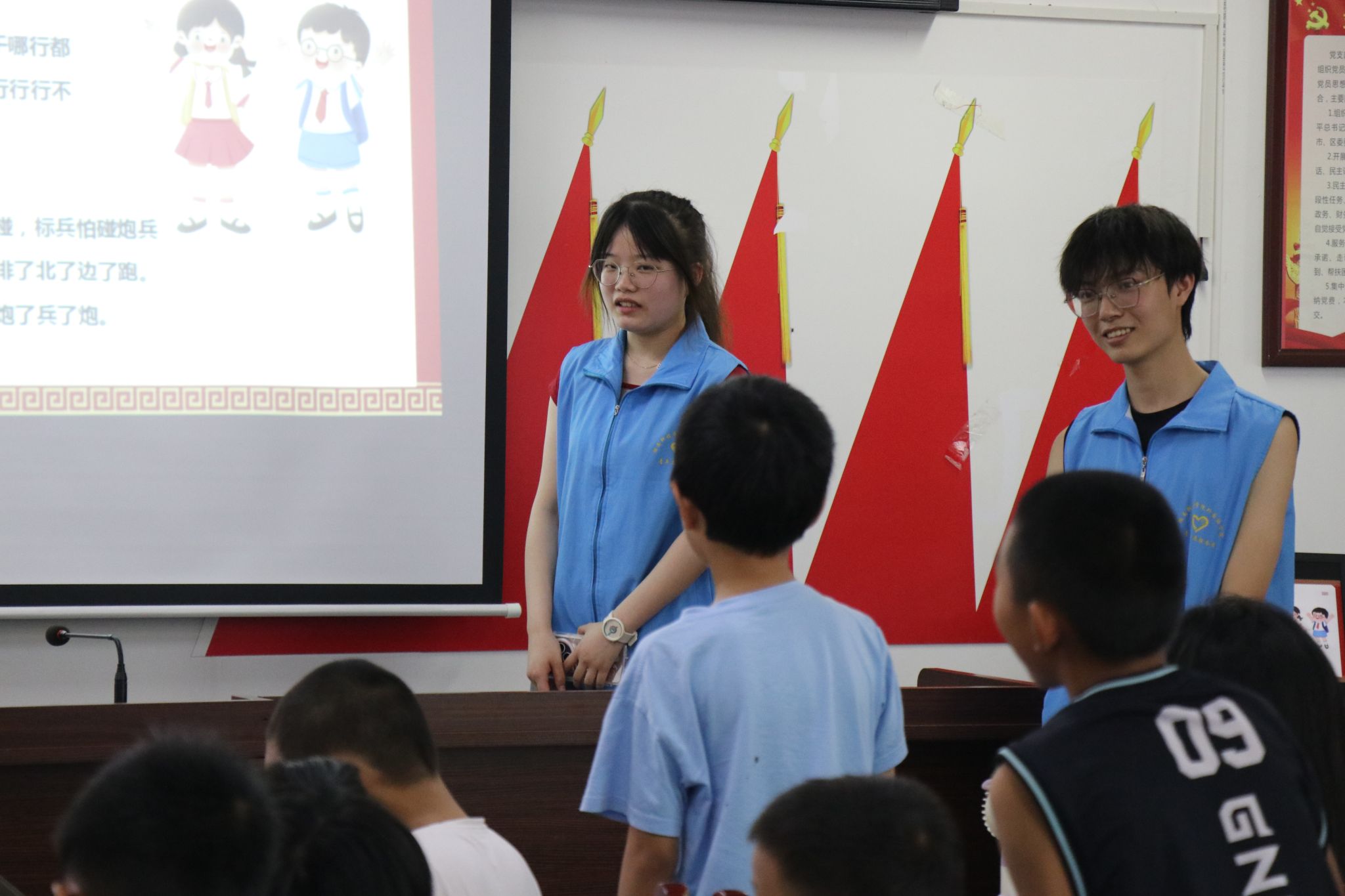 大学生们通过多样化的教学手段,如PPT展示、视频播放及互动游戏,为当地儿童带来了生动的趣味英语课堂,重点教授了不同职业的英语单词,旨在培养孩子们的职业尊重意识与英语学习兴趣。同时,结合推普宣传,引导孩子们正确使用普通话,还集体诵读《少年中国说》,有效激发了孩子们的爱国情怀。