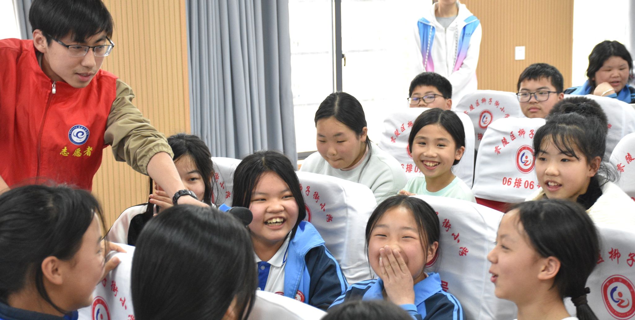 活动以“优点大轰炸”游戏开场,志愿者将学生分为10人一组,引导孩子们互相挖掘同伴优点。“你运动能力超强”“你总是主动帮助同学”……真诚的赞美让现场充满欢声笑语。在“和情绪小怪兽做朋友”情景教学中,志愿者通过肢体语言示范、角色扮演等方式,生动讲解情绪的多样性,并传授“深呼吸法”“倾诉法”等实用情绪调节技巧。孩子们积极参与互动,直观感受不同情绪的特征与应对方法。