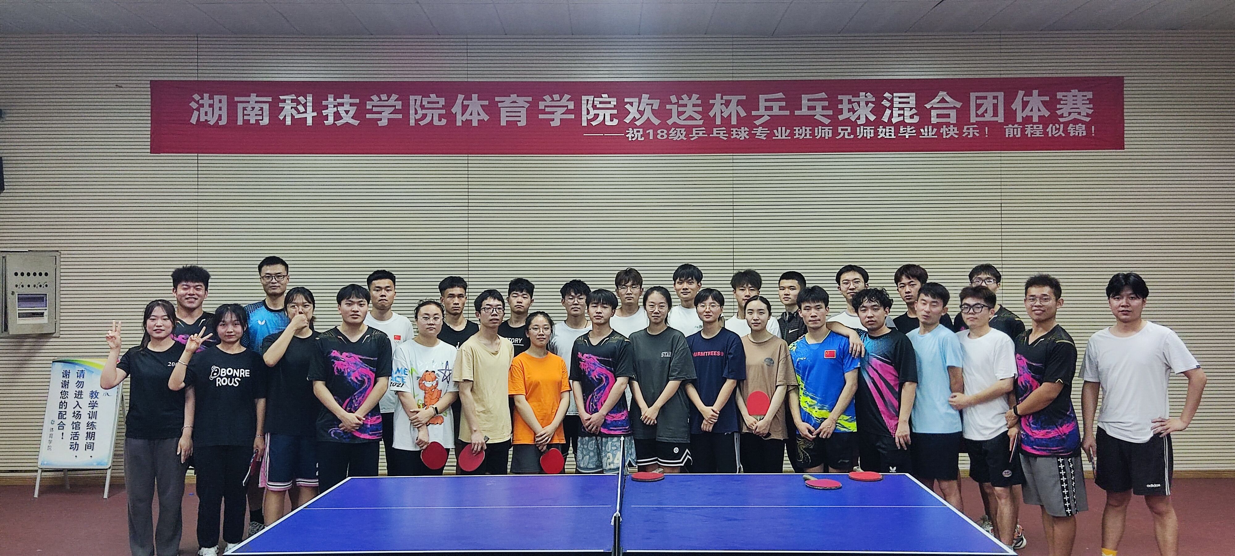 本网讯 5月9日,华体会官方版网站登录入口体育学院欢送杯乒乓球混合团体赛在训练馆三楼举行,此次比赛赛制为循环赛,按照循环赛积分确定最终名次。经过激烈角逐,18级乒乓球专项班代表队最终获得冠军。