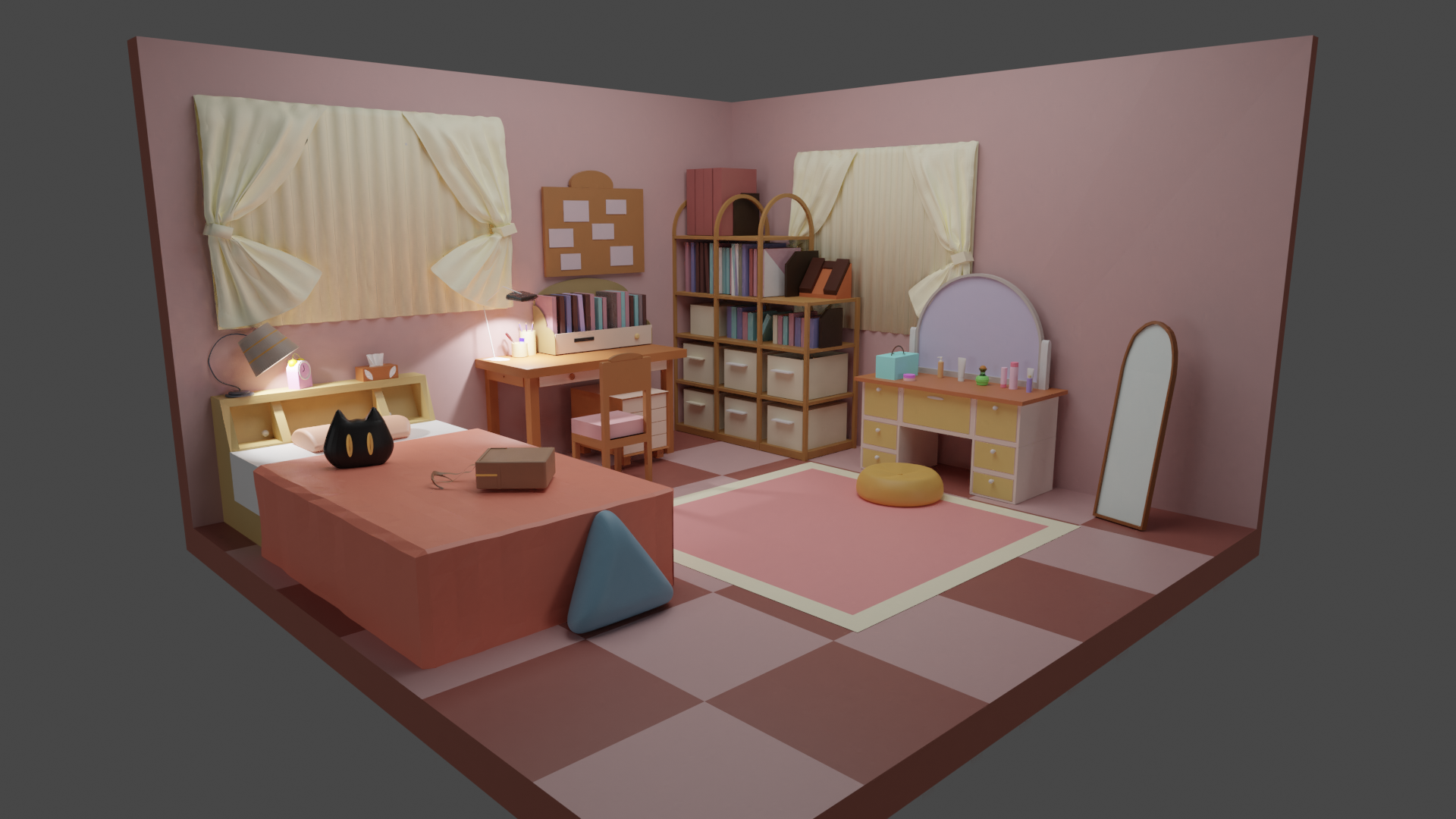 该公司专业培训人员依托Blender三维图形图像软件,从软件的界面认识,现实场景的拆分、建模、贴图、灯光、渲染等方面对学生进行实战课程教学。参与学生分为十八个组,每组根据实战课程教学所学知识,进行场景模型还原。