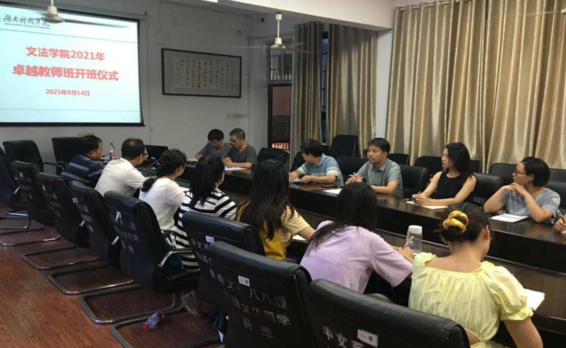 会上,肖智成就卓越教师班培养方案、考核方法以及本届办班情况进行了介绍。贡贵训对卓越教师班的建设提出了具体要求。他指出,要积极推进校地合作,借助地方中学优秀教师资源和优质教学资源平台实现校校合作,提升汉语言文学专业人才培养质量;要以师范专业认证为契机,引导学生围绕“一践行,三学会”,加强师范生专业技能训练。