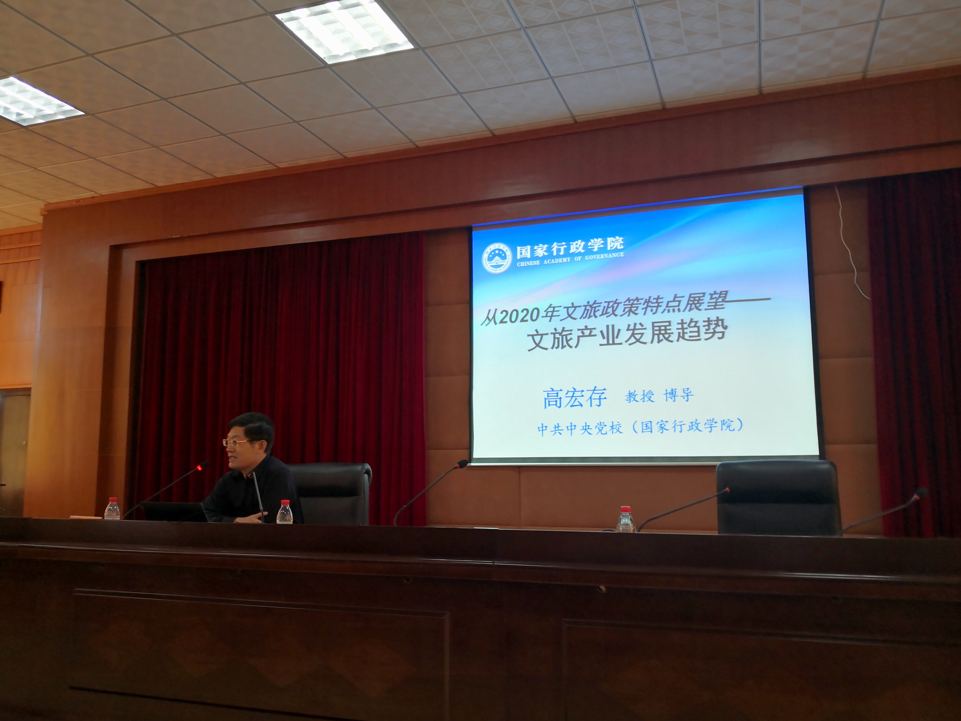 本网讯 近日,中共中央党校(国家行政学院)高宏存教授、博士生导师应邀来校作学术讲座。讲座由旅游与文化产业学院党总支副书记潘清远主持,旅游与文化产业学院100余名师生参加学习。