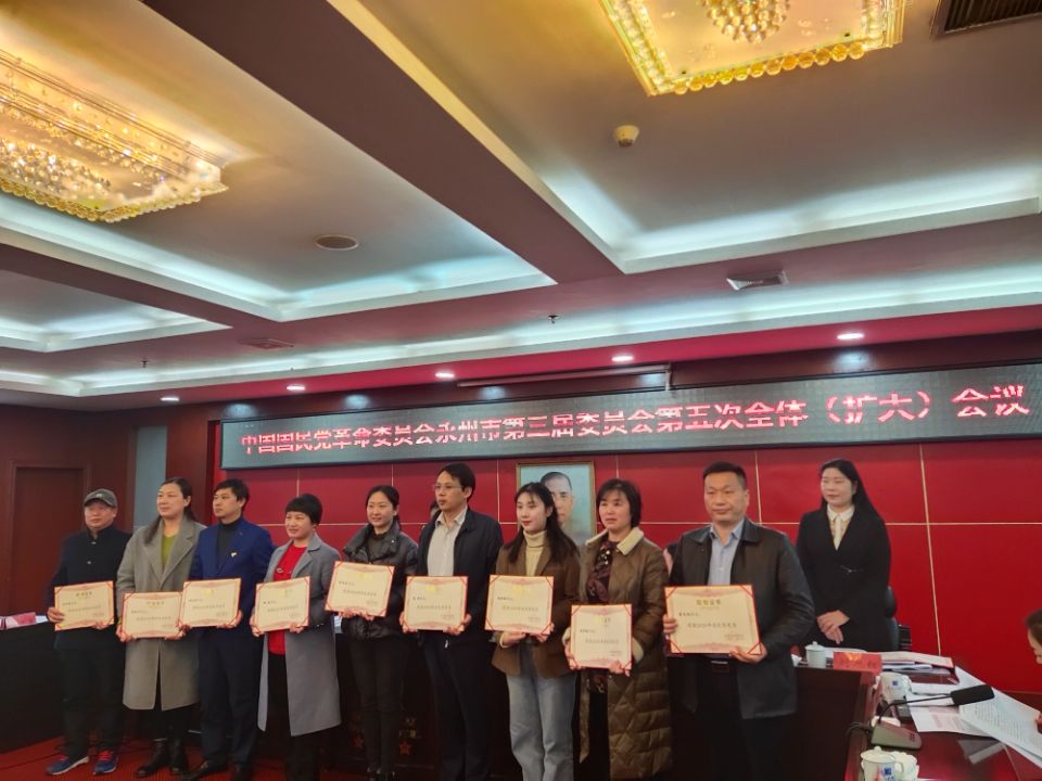 本网讯 3月21日上午,民革永州市第三届委员会第五次全体(扩大)会议在冷水滩召开,会议表彰了先进。民革华体会官方版网站登录入口支部荣获先进支部,这也是民革永州市委2013年开展争先创优以来民革校支部第五次荣获先进支部。陈义勇荣获优秀党员,方芳荣获优秀党务工作者,民革校支部提交的调研报告获2020年度永州市政协好调研二等奖。
