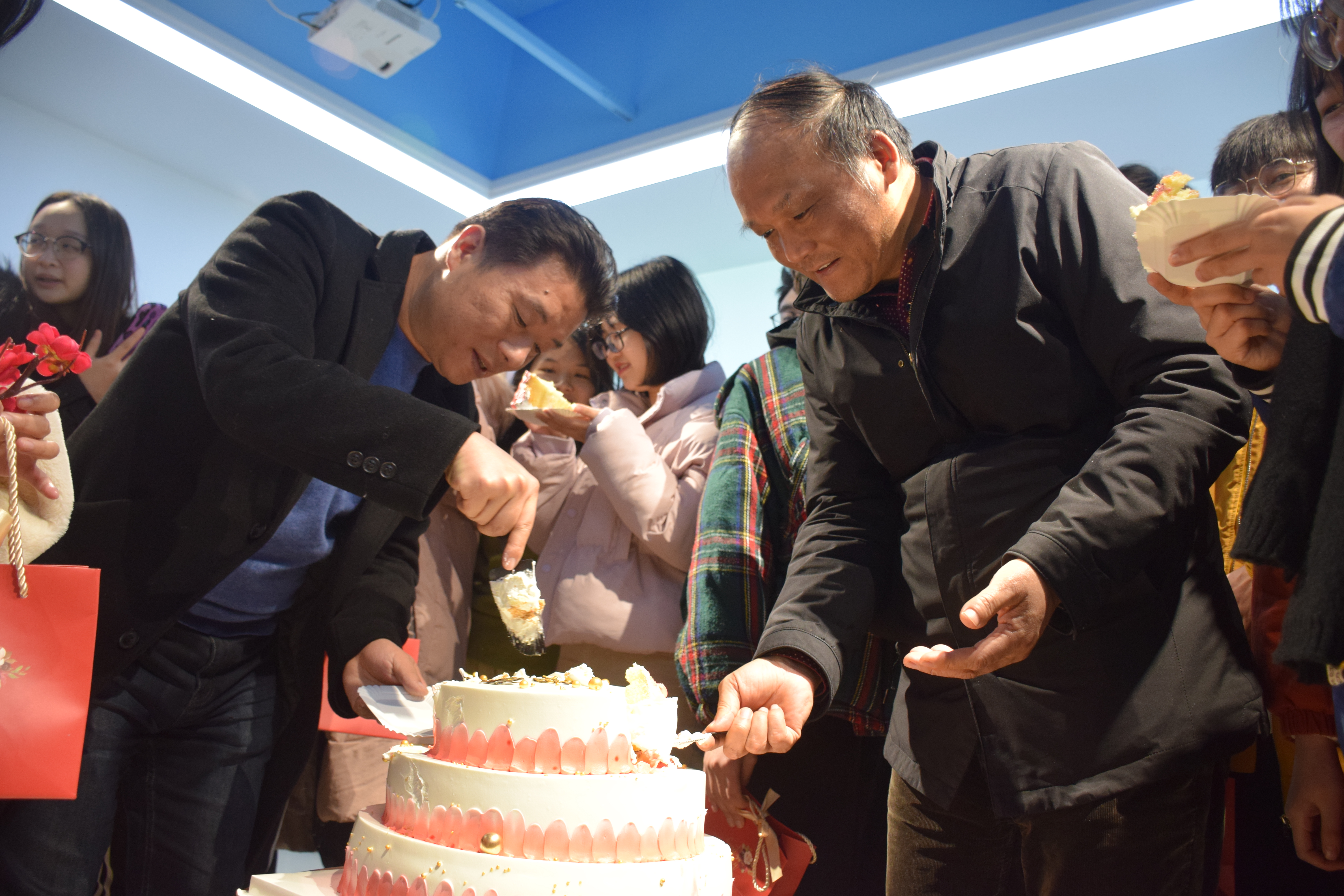 学院还为考研学子精心准备了包含状元笔、状元袜、彩虹糖、祝福寄语的考试加油包。杨增和与王瑛为每一位考研学子送上蛋糕,寓意考研学子们都能金榜题名,“糕”中2021。