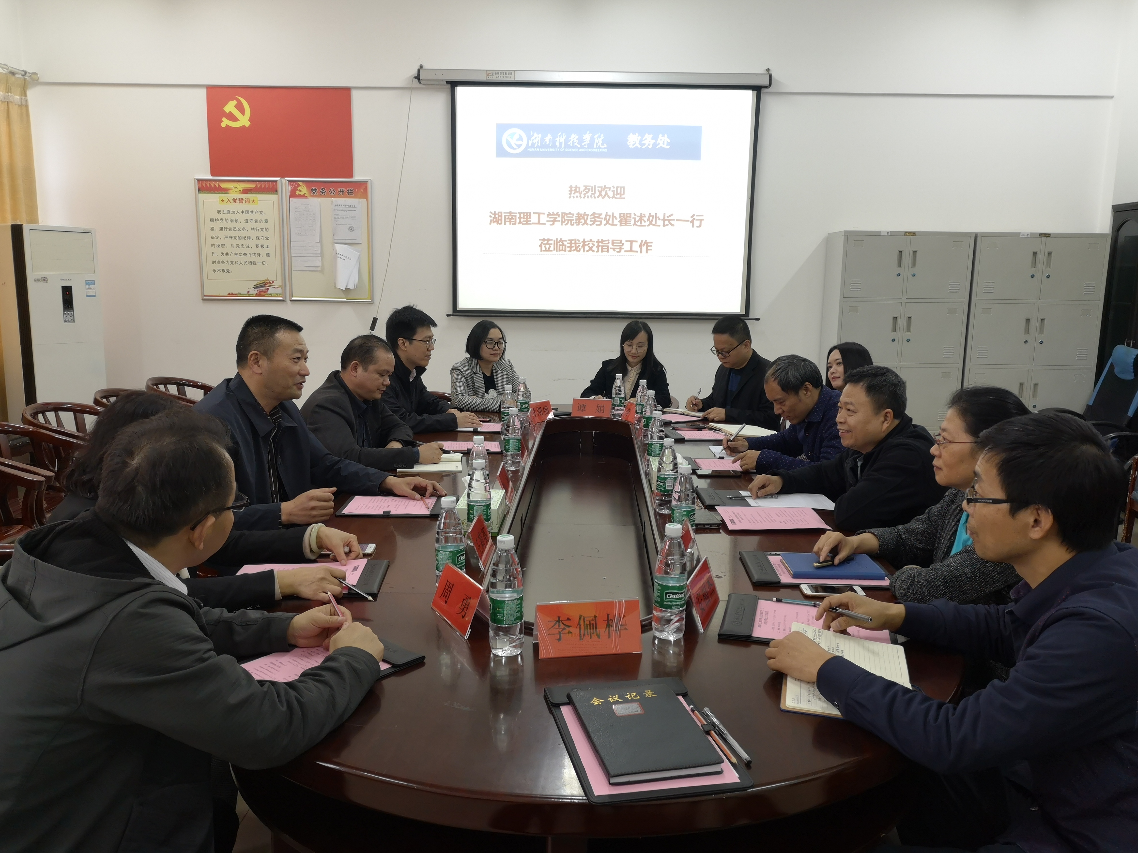 本网讯 11月5日下午,湖南理工学院教务处瞿述处长一行6人来我校考察交流。教务处处长黄文以及教师教育学院、实验实训中心相关负责人参加了交流座谈。