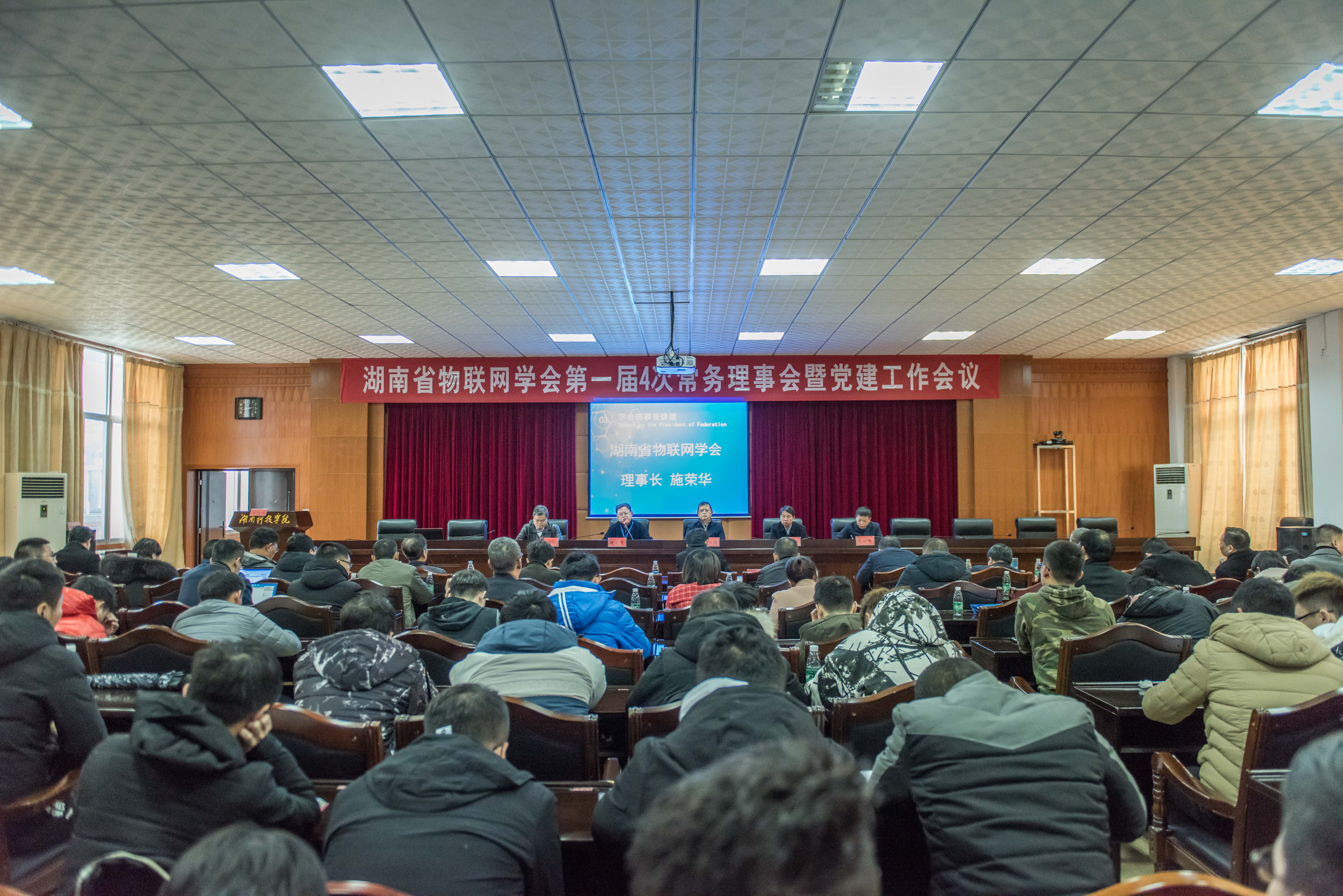 本网讯 12月20日,湖南省物联网学会第一届四次常务理事会暨党建工作会议在我校举行,副校长李常健、省教育厅高教处处长曾力勤、学会理事长施荣华全体以及常务理事代表参加会议。
