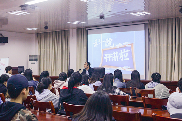 本网讯   3月27日晚,由校团委、科技处主办的第十四期“科院开讲啦”在知行楼107如期开讲。旅游与文化产业学院院长、“湖湘青年英才”黄渊基博士应邀担任讲座嘉宾,与学生畅谈自己对“读书、立志与人生路”的经历与理解。