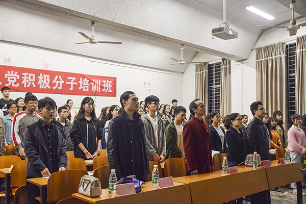 本网讯   10月22日,外国语学院、传媒学院、音乐与舞蹈学院、旅游与文化产业学院和国学院联合举办的2018年下学期入党积极分子培训班举行开班典礼。传媒学院党总支书记蒋诗堂,其他相关学院老师和84名学员参加。