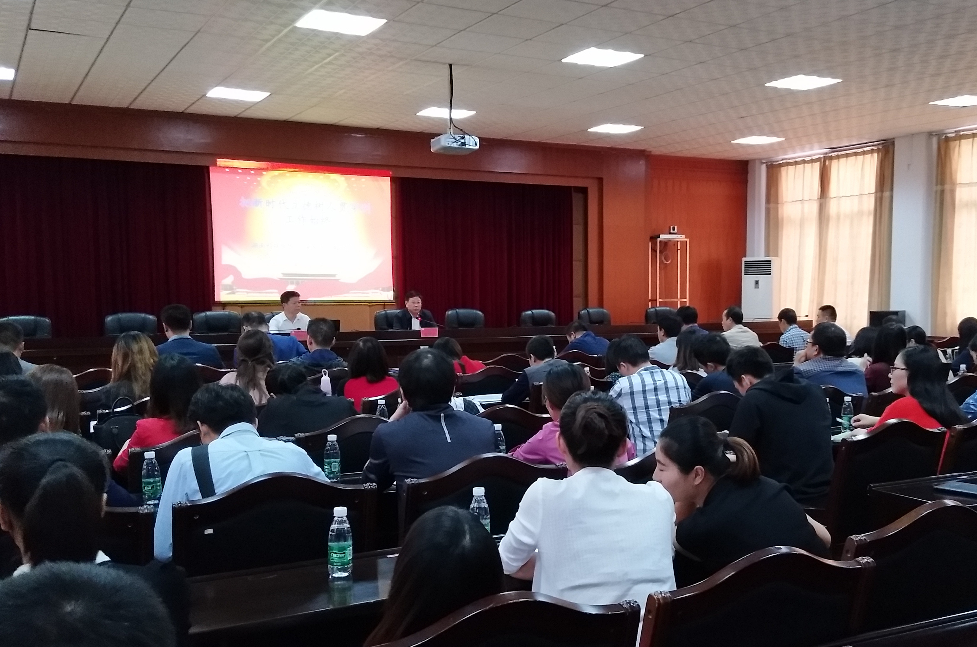 本网讯   为贯彻落实习近平总书记在全国教育大会上的重要讲话精神,提高新时代辅导员的素质和能力,学工部组织开展辅导员专题培训班。9月27日下午,培训班第一讲由副校长程智开主讲,各教学学院党总支副书记、全体辅导员以及学工部相关人员参加。学生工作部部长唐华山主持。