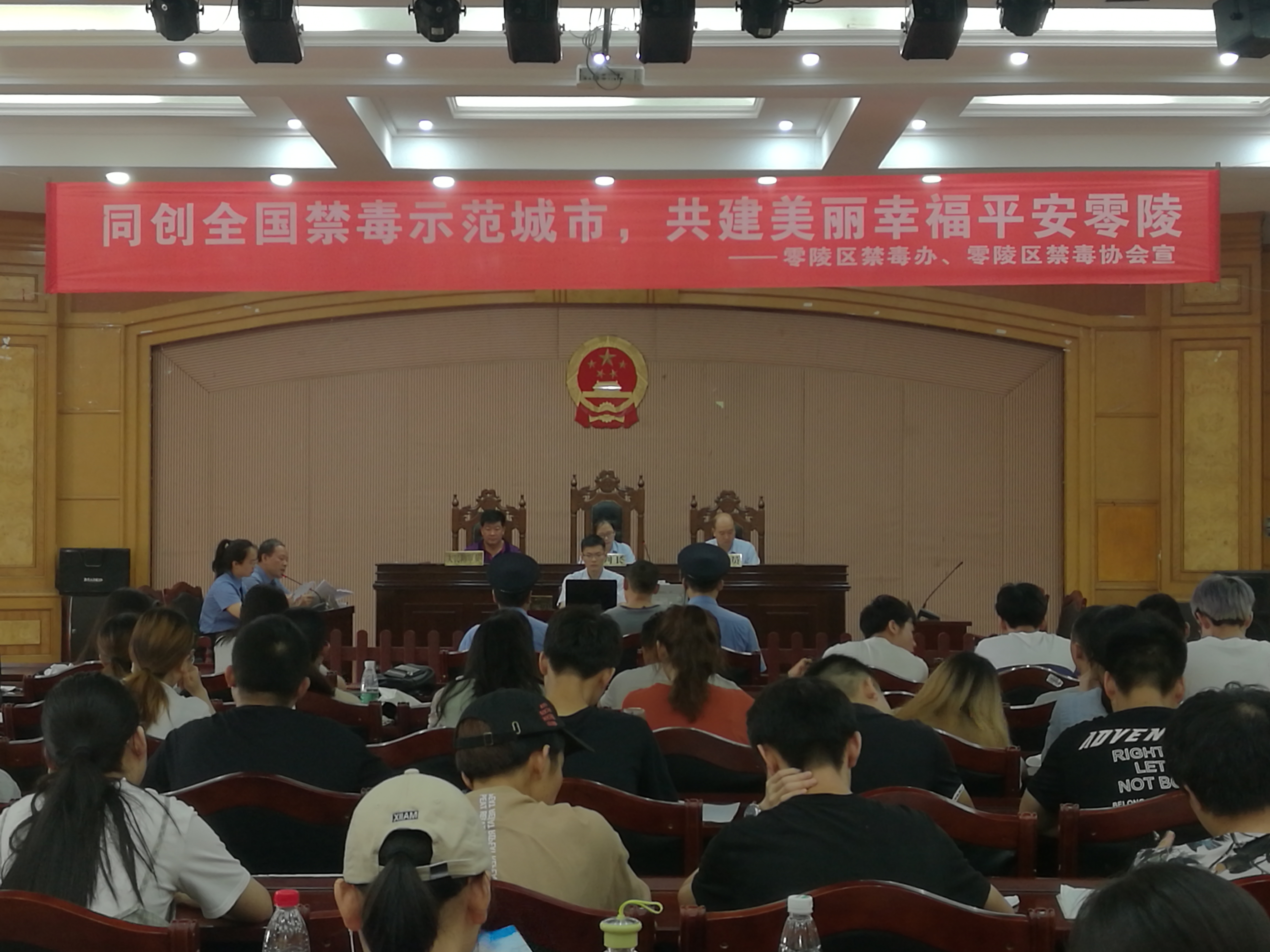 据悉,零陵区人民法院为我校法学专业省级优秀实习基地,于2017年9月在人文学院设立巡回法庭,此次现场开庭即是双方共同培养法律实务人才的重要形式。同学们纷纷表示,参加旁听对于大家更为直观的了解庭审流程、掌握控辩技巧有着重要作用。通过现场感受领略法官、检察官和律师的职业风采,帮助同学们树立法律职业理想,激励大家努力学习专业知识。庭审结束后,零陵区人民检察院、零陵区禁毒办、零陵区禁毒协会还向在座的同学进行了禁毒宣传。