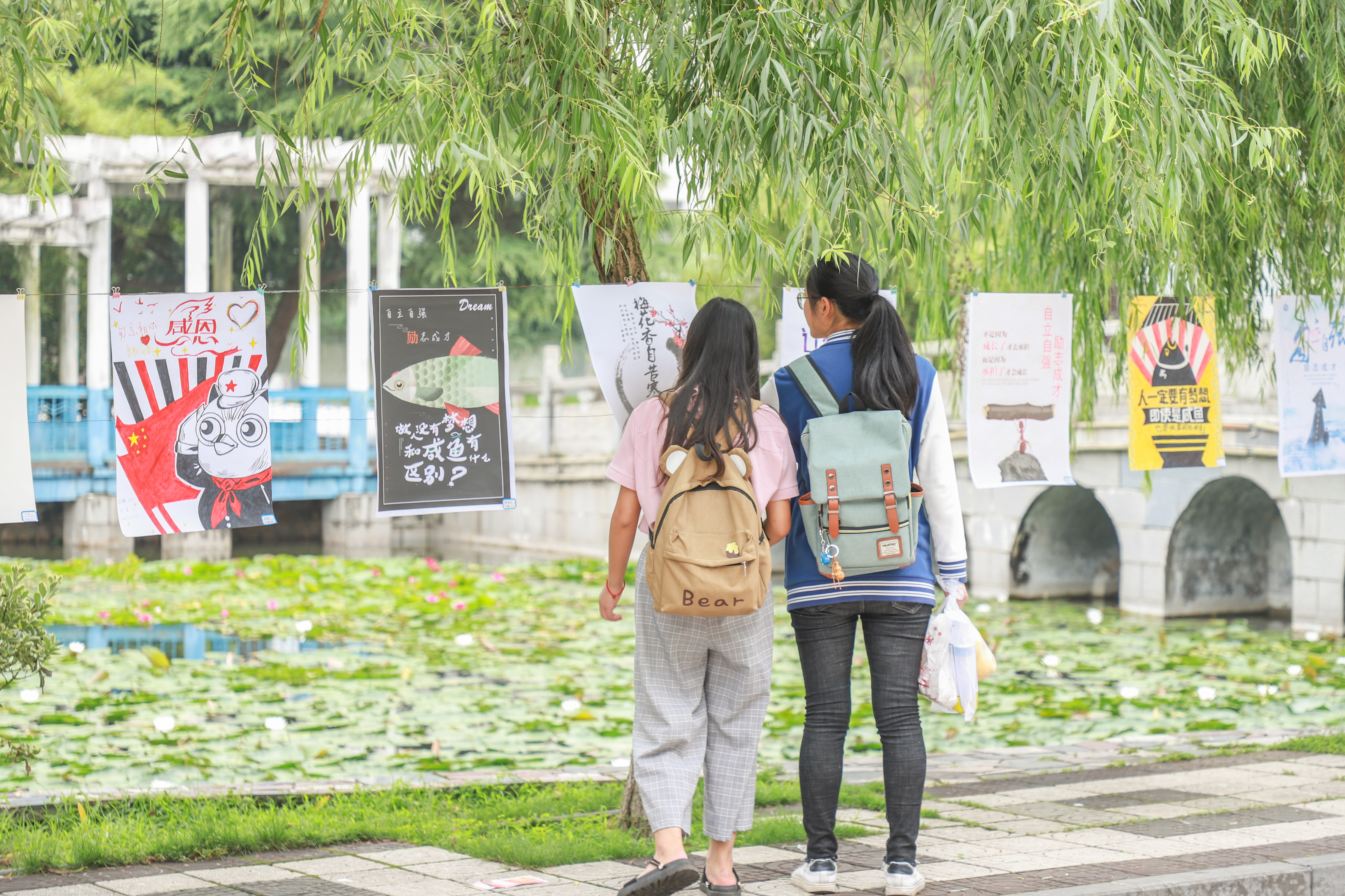本网讯   6月5日,“自立自强,励志成才”海报设计大赛优秀作品展在爱莲湖畔拉开了序幕,展览吸引了广大师生前来观展。