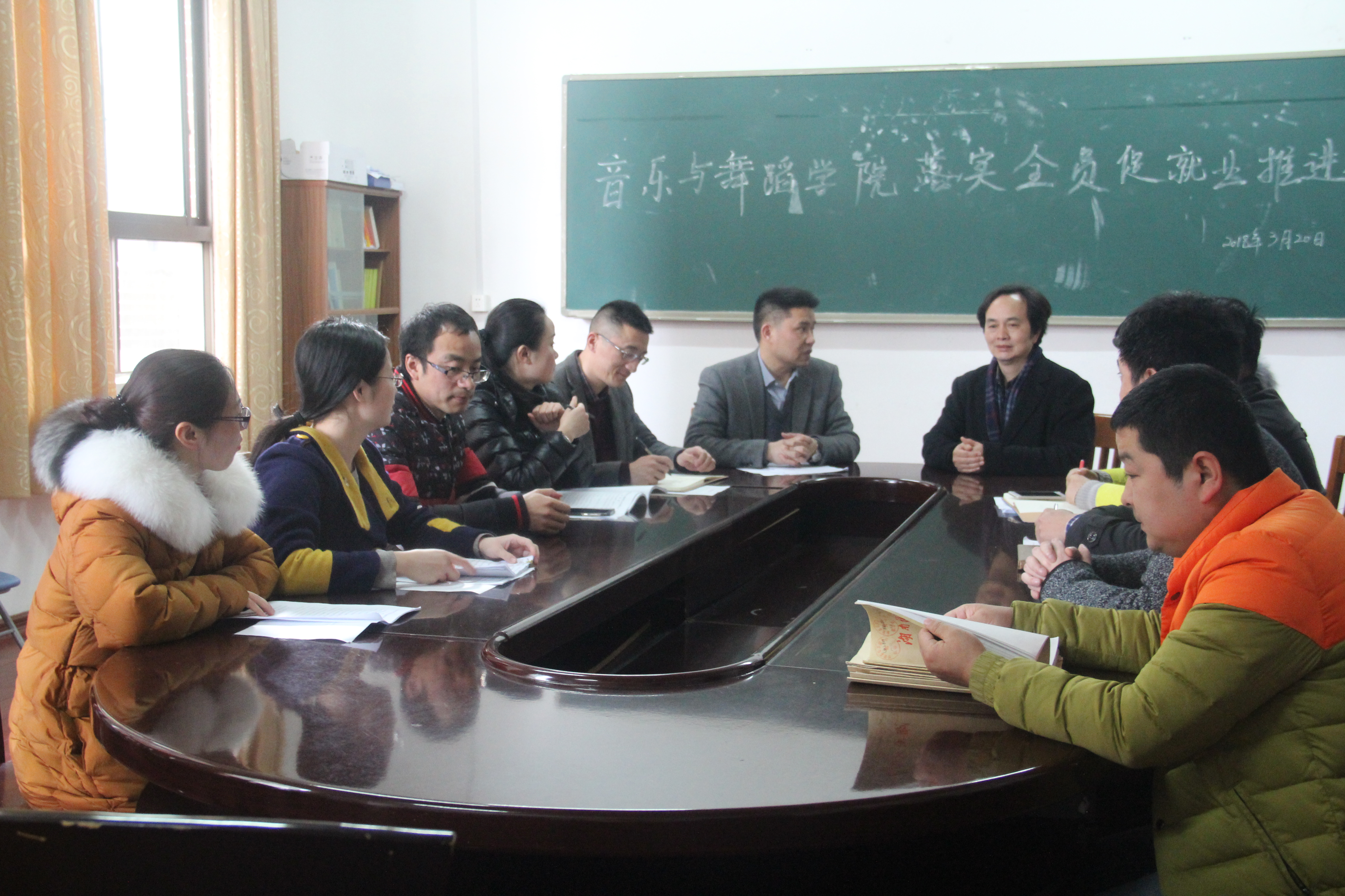 本网讯3月20日下午,在音乐与舞蹈学院会议室进行了“落实全员促就业推进会”。该院院长邹林波教授、党总支书记廖宁杰及毕业班各班班主任参加了本次推进会。