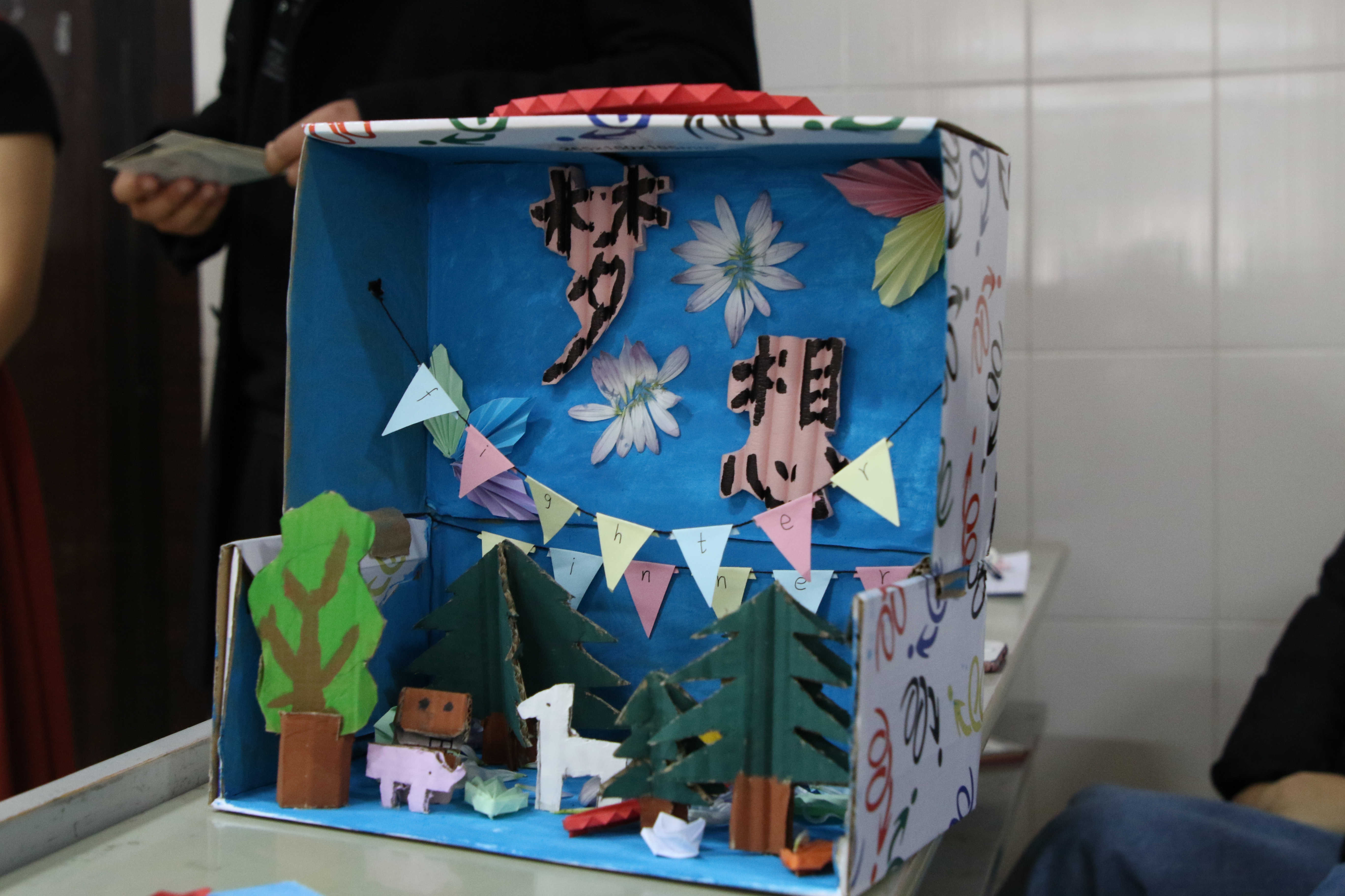 活动中,每个参赛小组携作品上台展示,解说作品的设计理念、实用性以及作品意义。参赛选手通过创意设计制作,把快递盒“大变身”,制作成环保美观的工艺品。有的成为精致的书架和和抽屉,有的变成了漂亮的摩天轮和船舶模型。作品新颖的创意和精巧的制作也赢得大家的点赞,大家纷纷惊叹选手们的脑洞大开,废弃的快递盒还可以变成精美实用的工艺品。