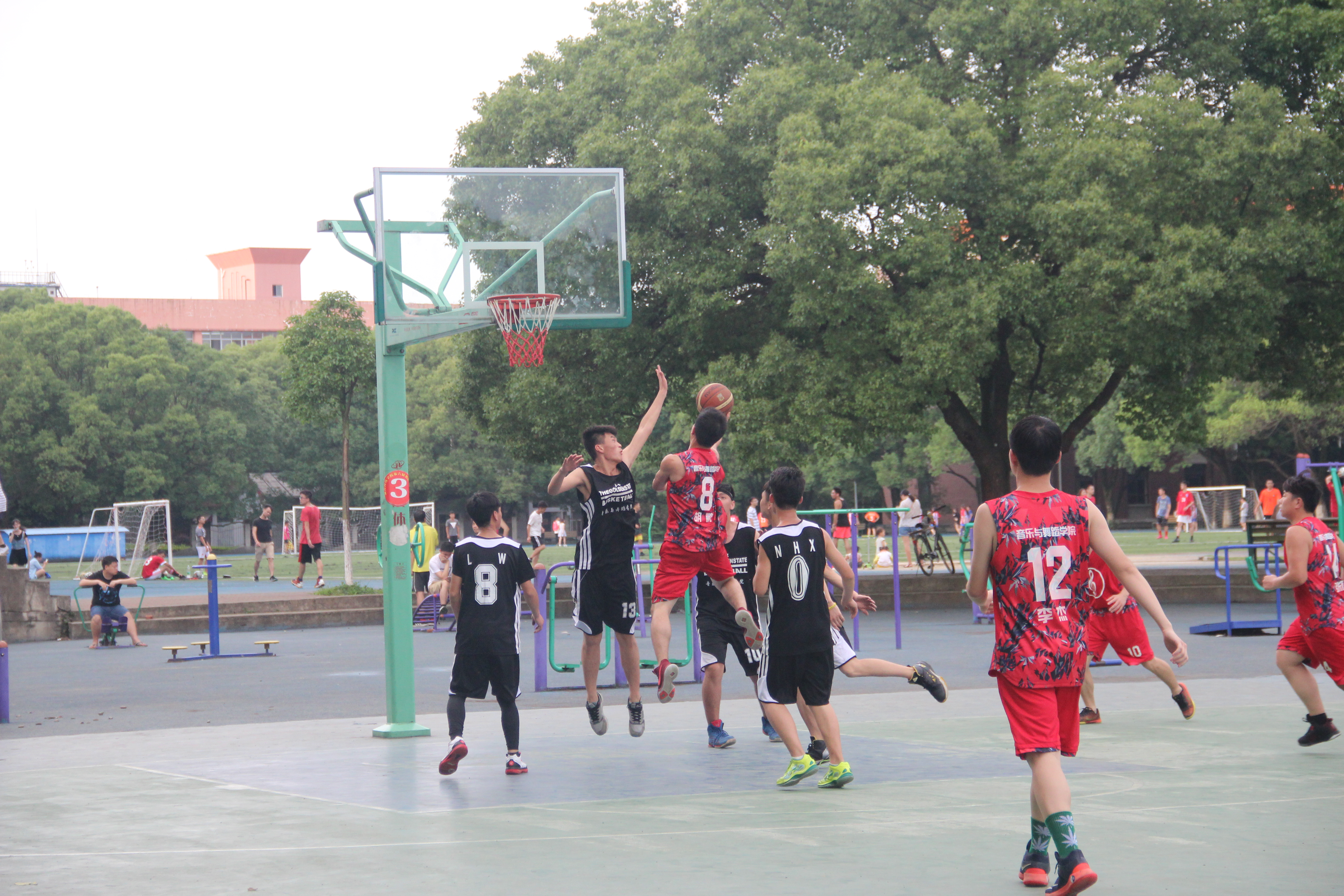 本网讯 5月22日下午,音乐与舞蹈学院欢送毕业生篮球赛在桃园篮球场如期举行,本次比赛时间为5月22日至30日,比赛总共四场,本着友谊第一,比赛第二的原则,分别由三个低年级的年级球队与大四毕业生球队进行切磋交流。首场对阵双方是2013级与2016级年级篮球队,学院党总支书记廖宁杰、副书记蒋磊及全体辅导员都到场为比赛双方鼓劲加油。