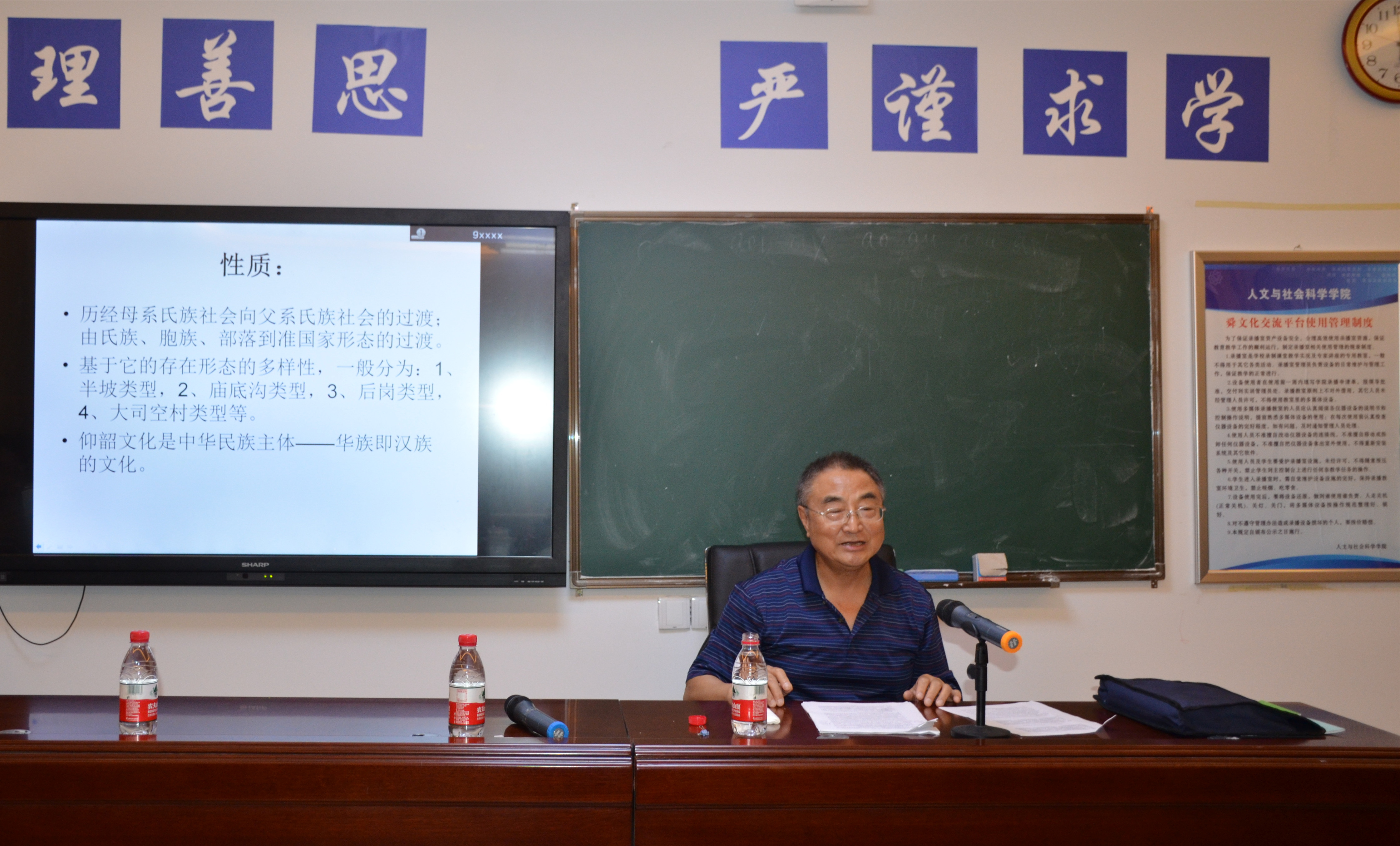 仰韶文化是在新石器时代分布于黄河中游地区重要的一种彩陶文化,陈望衡教授分别从彩陶的出现——审美意识觉醒的重要标志龙凤雏形的出现——民族图腾标志的建立花纹鱼纹的彰显——中华吉祥意识的苏醒鹳鸟衔鱼纹的意义——王权意识的强化城垣宫室之美——国家物质文化形态五个方面来阐述华族的开始和仰韶文化的意义。讲座中师生们观看了远古时期刻有花鸟鱼纹的彩陶以及表现“贵族的感情”的遗迹、遗物的陈列图片。陈望衡教授指出"仰韶文化"展示了中国母系氏族制度衰落期到父系社会早期的社会结构和文化成就,同样也是父权与君主统治在意识形态领域中的反映。从某种意义上来仰韶文化为中华文化奠定了基本性格,且仰韶文化与传说中的皇帝时期是同期的,所以,仰韶文化的创立实质是中华民族的建立。