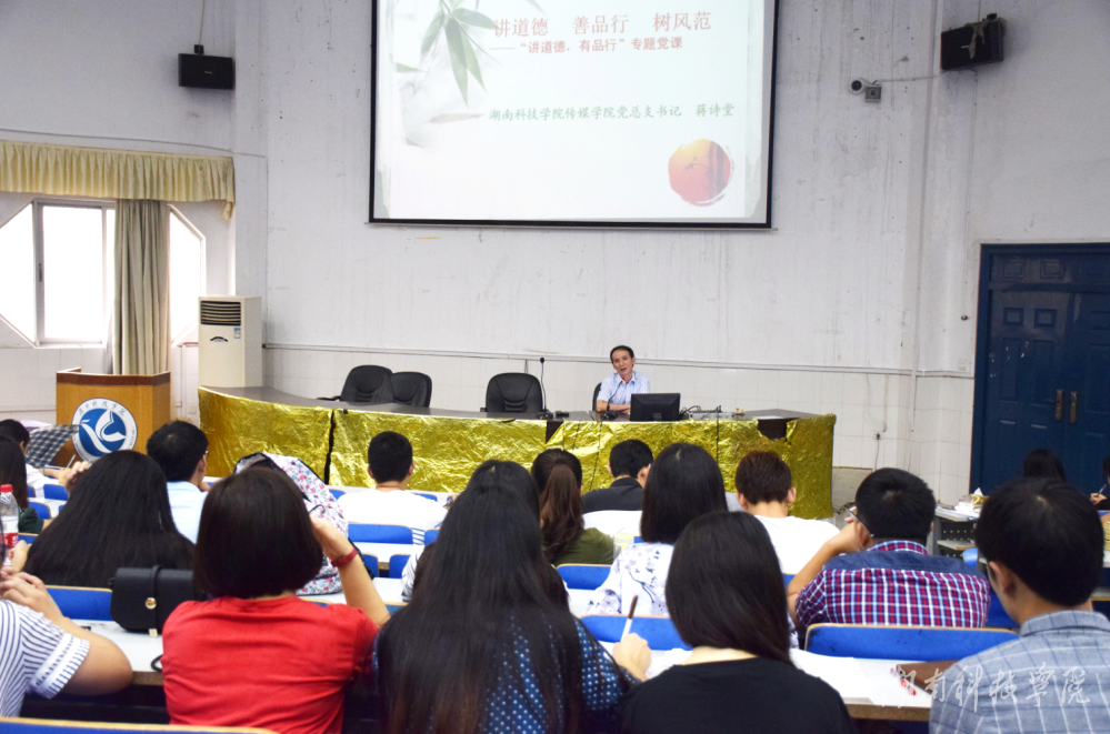 本网讯(通讯员 刘平甫)9月1日上午,传媒学院全体党员齐聚日新楼212教室,听该院党总支书记蒋诗堂上题为《讲道德,善品行,树风范》的专题党课。