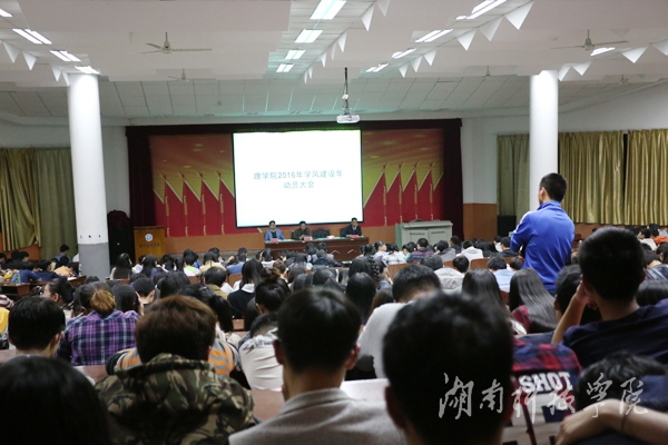 本网讯(通讯员 谢娟 邓伟伟) 5月9日晚,理学院在明德楼报告厅举行2016年学风建设动员大会。