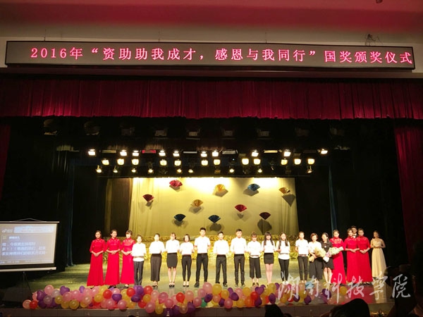 本网讯(通讯员 张璐 郭金双)5月14日晚,美术与艺术设计学院在大音乐厅举行2016年“资助助我成才,感恩与我同行”国奖颁奖仪式,分别为获得2014-2015学年国家奖学金和国家励志奖学金的43位学生颁发荣誉证书。