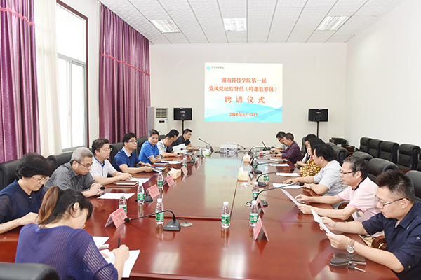 为贯彻落实全面从严治党要求和《关于支持民主党派和无党派人士开展政党协商和民主监督的实施办法》(湘科院党政办通〔2017〕58号),实现监督监察全覆盖,学校从校内民主党派和政协委员中遴选聘请党风党纪监督员(特邀监察员),以进一步强化民主监督和民主管理。6月14日下午,学校举行聘请仪式,何林金、于皓、王豪才、徐湘勇、周飞战、孔永红、汤亚平、吴迪等8位教师受聘。校党委副书记唐艳明、纪委书记彭立威为受聘人员颁发聘书并讲话。