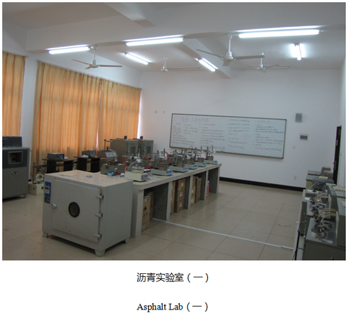 | 沥青实验室(一) 该室于2006年由“中央与地方共建基础实验室”项目专项资金资助建立,实验室面积70㎡,资产达25万元。该室目前承担了路基路面工程、土木工程材料等课程的实验教学任务。主要实验项目:沥青针入度、软化点试验;沥青加热老化试验;沥青闪、燃点试验;沥青薄膜加热试验;沥青蜡含量试验;沥青动力粘度试验等。 部分主要仪器设备 设 备 名 称 | 规格型号 | 数量 | 沥青蜡含量仪 | CXS-10 | 2 | 低温恒温水浴 | HWY-20 | 2 | 电脑沥青针入度仪 | SYD-2801C | 6 | 电脑沥青软化点测定仪 | SYD-2806F | 6 | 沥青旋转薄膜烘箱 | 85型 | 2 | 自动恒温沥青标准粘度仪 | LZN-1 | 2 | 沥青运动粘度计 | SYD-0602 | 2 | 电脑全自动沥青闪燃点仪 | LSR-2 | 7 | 电动马歇尔击实仪 | LJS-2 | 2 | 全自动沥青混合料拌合机 | SLHB-Ⅱ | 1 | 微机控制沥青混合料材料性能试验系统 | LMT-3 | 1 | 离心式沥青抽提仪 | LLC-15 | 1 |