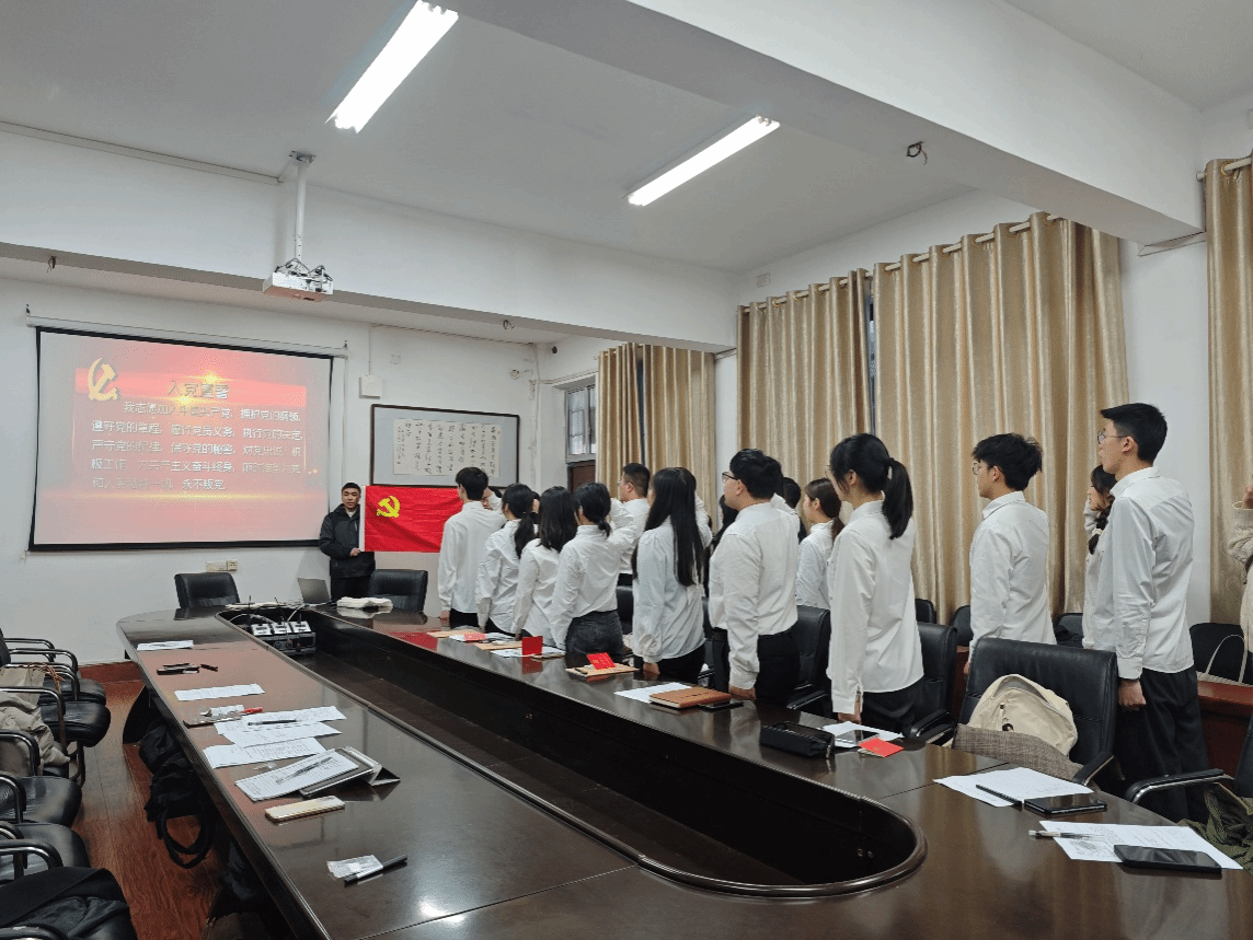 3月19日,学院党总支组织2024年上期新发展入党的24名学生党员在明德楼207党员活动室举行新党员入党宣誓仪式。