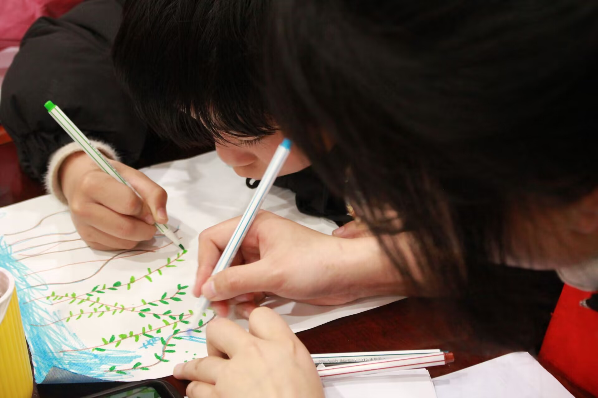 “我们带孩子们品鉴诗词,和他们一起作画,通过互动交流,让他们感受春的生机和创作的快乐,也希望通过这种方式,向他们传递社会的温暖。”志愿者周婉玲说道。