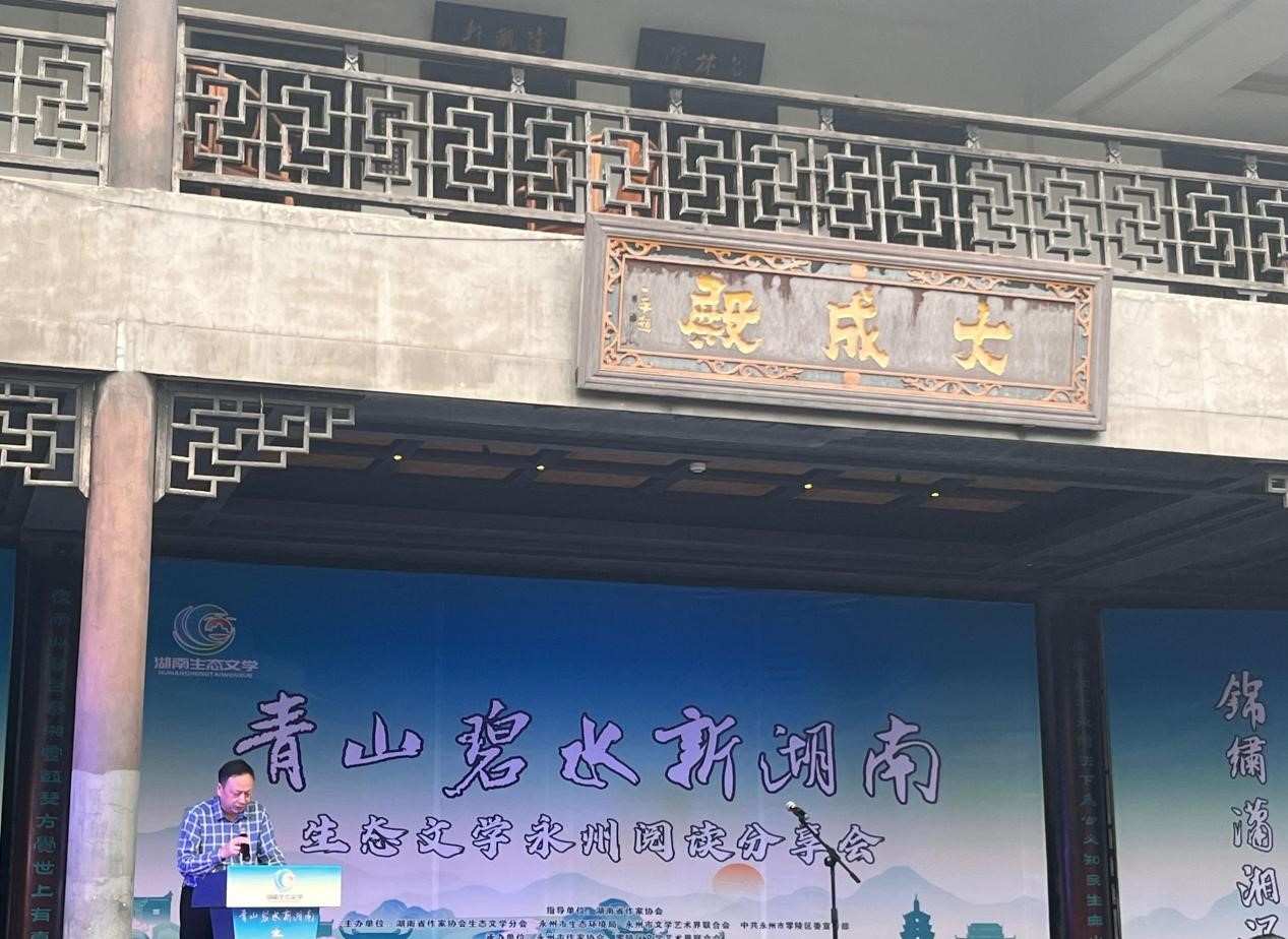 (通讯员朱檑)10月21日下午,“湘江源头·千年鸟道”——湖南省作家协会生态文学分会2024湖南(永州)生态文学周暨生态文学阅读分享会第一场“青山碧水新湖南”生态文学阅读分享会活动,在位于潇水与湘水合流处的萍洲书院内举行。本次分享会以“千山诗文地,锦绣潇湘缘”为题,共同探讨“文学在生态文明建设中的使命担当”,共同分享黄亮斌、文紫湘两位优秀作家的生态文学代表作。