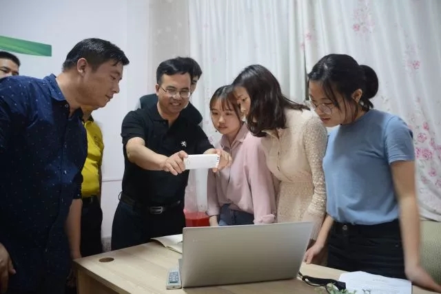 平时与陈弘书记这么近距离交流的机会不多,陈书记的到来,令我们感到十分亲切。陈书记了解我们的微党课主题后说道:“这个很好!”。看到我们的微党课PPT 中提到了永州市委书记李晖来我校调研时,勉励我校积极打造“三名工程”(名师、名专业、名学生),他拿起手机要给我们拍照,说要记录下我们学习的一刻。