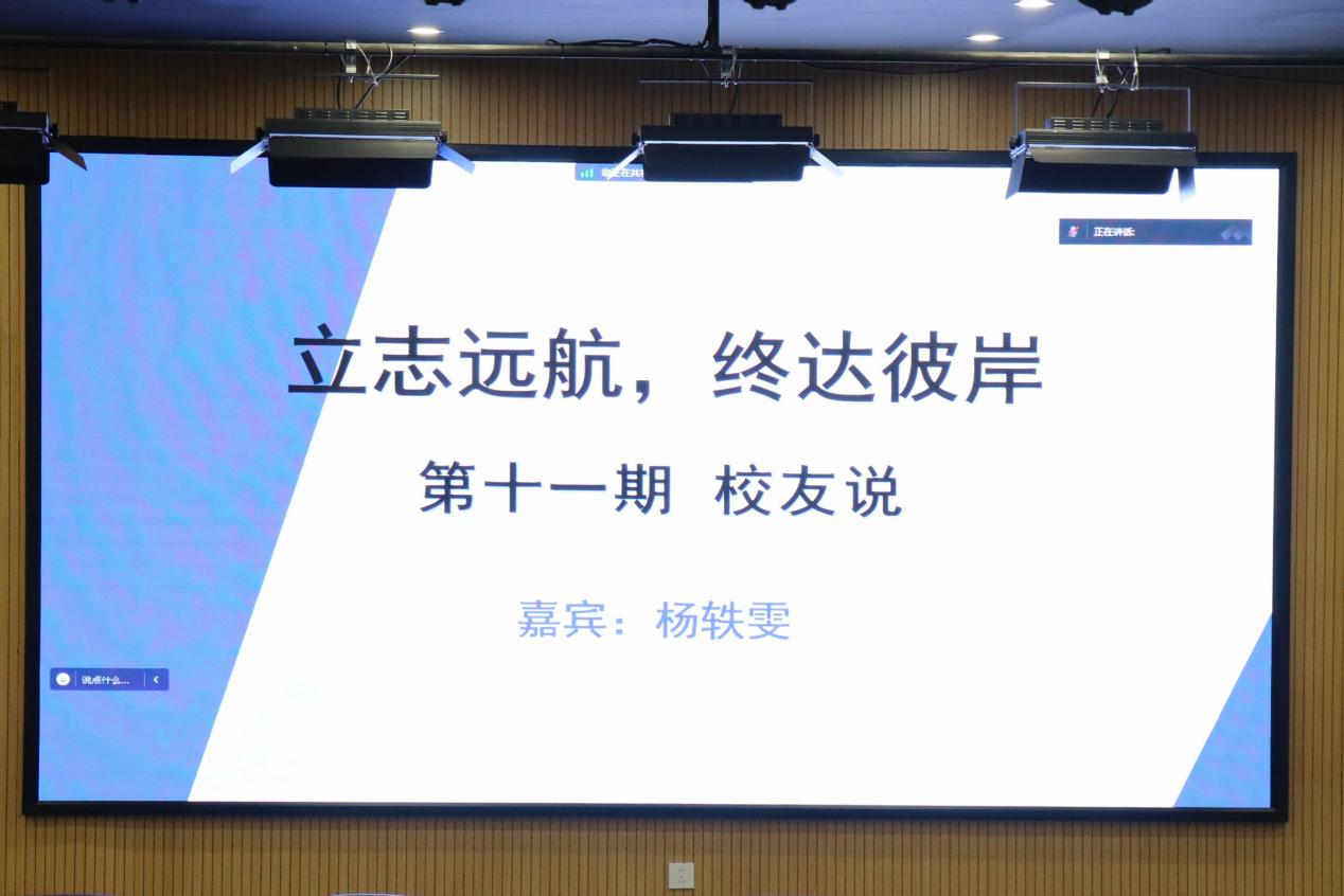 (通讯员 谭夏清 摄影 赵思怡)11月15日19:10外国语学院于博雅楼东三报告厅举行以“立志远航,终达彼岸”为主题的第十一期校友说。由新化县游家镇基层党建办公室试用期公务员、曾任外国语学院团总支办公室副主任、英师1901班学习委员杨轶雯担任主讲嘉宾。全院共190多名同学参加此次活动。