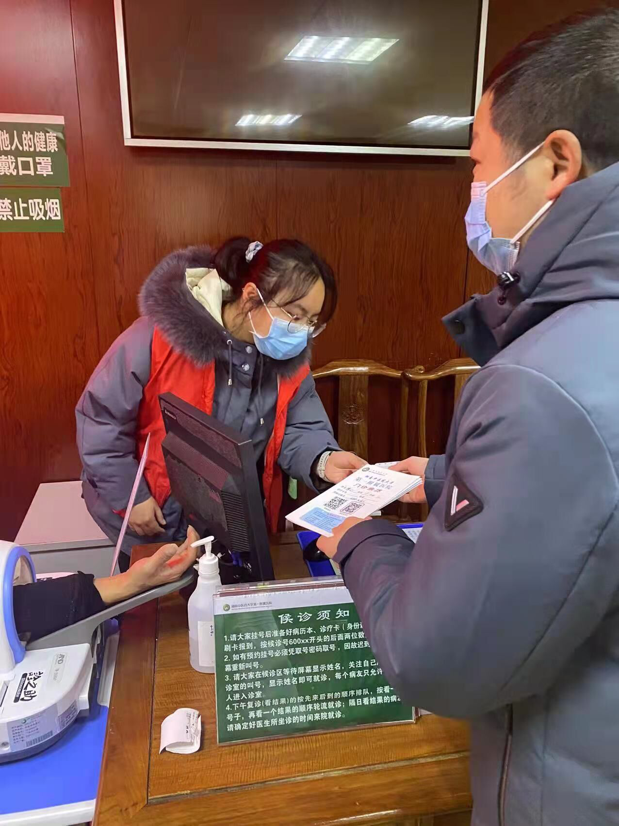 疫情期间,又逢新年佳节,来医院里检查的人数增加了不少,日语2102班的兰雅乐同学便主动加入了医院小卫士的志愿者行列,当了两天的志愿者,在这两天的志愿者生活中,每天重复着为患者带路,回答来院人员的疑问,帮助老人查询健康码,教他们使用测压仪等等环节,不过,她依然觉得,“身体的疲倦与内心的喜悦比起来是不值一提的,希望需要帮助的人都能遇到小卫士。”