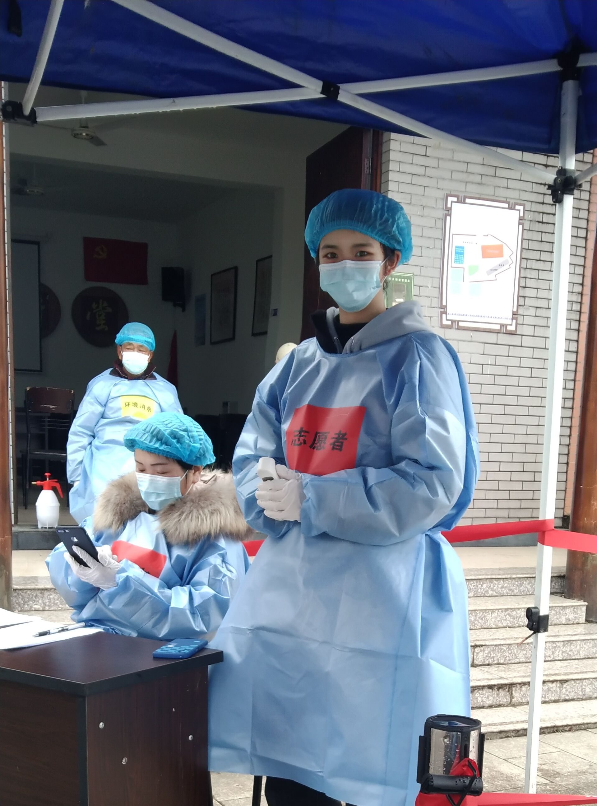 在新一轮疫情到来之际,商务英语2102班的鲍艳婷同学投身于志愿服务,走向抗击疫情的基层,为游客测量体温,查看健康码。虽然是一个简单的小动作,但在零度的气温下,长期的站立、反复的动作也是不小的挑战。她说:“这是对社会的一种责任与担当,也是对个人能力的锻炼、提升。在社会各界的共同努力之下,我相信新一轮疫情防控狙击战一定会取得胜利!”