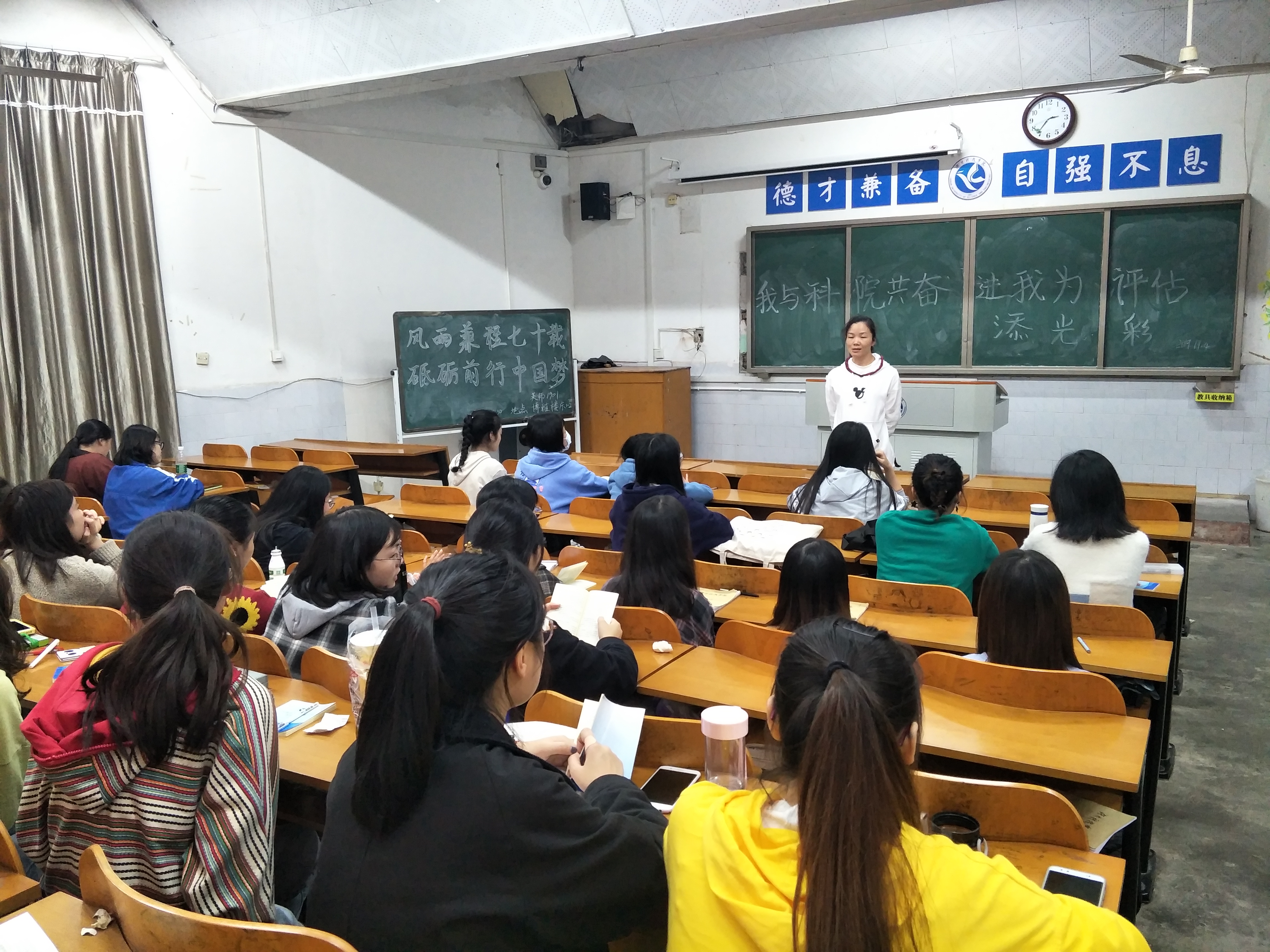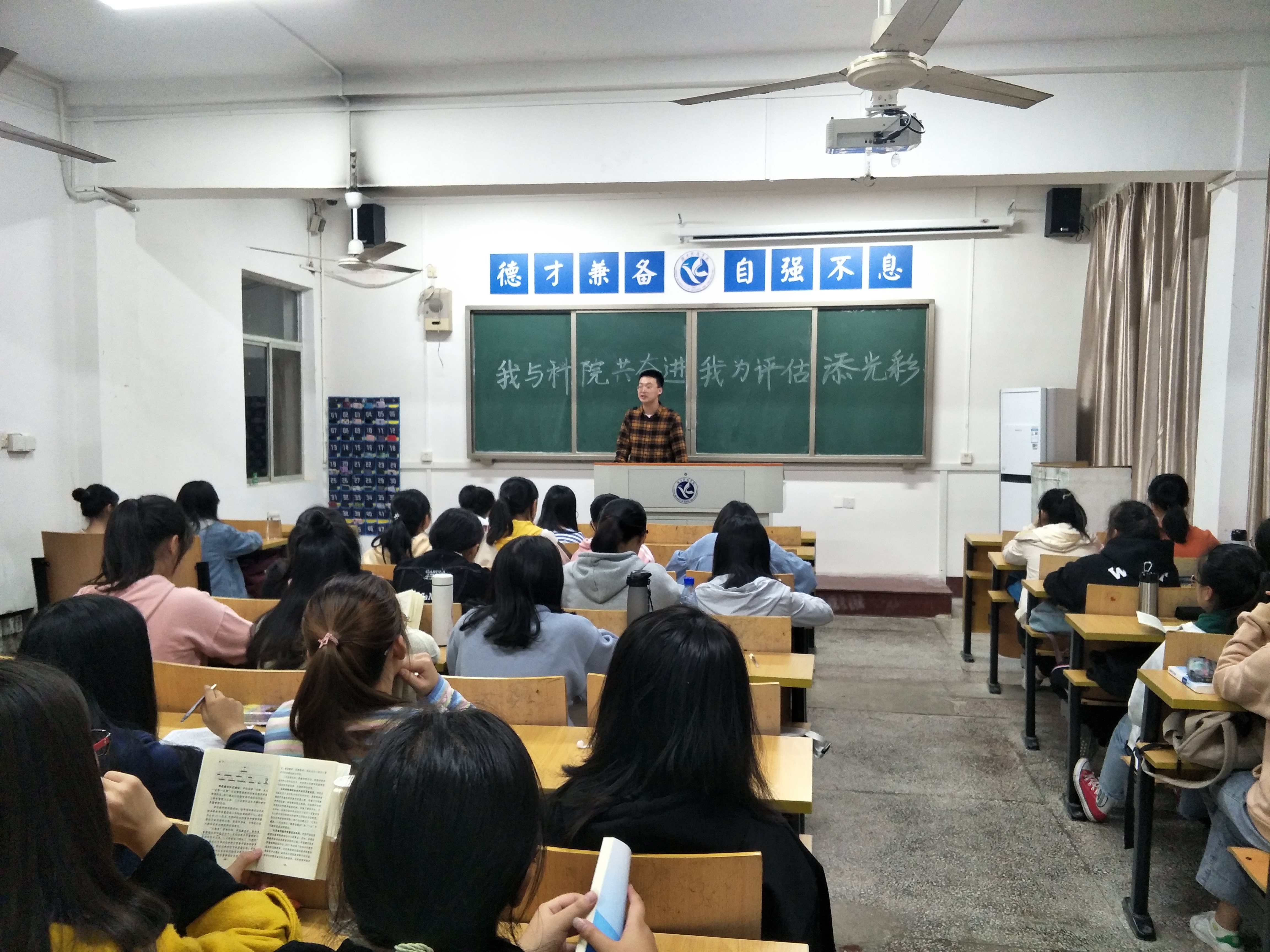 本网讯(通讯员 陈丽菲,沈叶恒),11月4日晚,我院各班为更好的迎接本科教学工作审核评估,加强学风建设,更好地体现学校的办学水平和教学质量,特召开“我与科院共奋进,我为评估添光彩”主题班会。