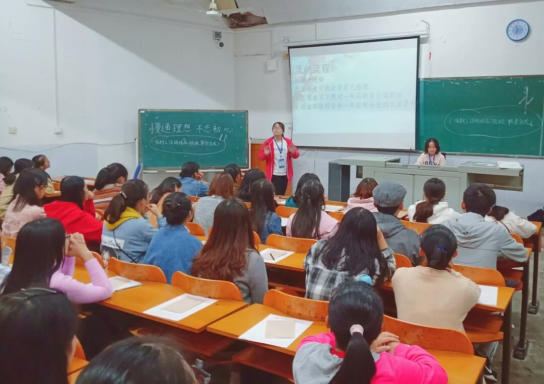 此次活动主要面向的是外国语学院的部分大一大二学生,活动的主要内容是给三年后的自己写一封信,以“时光速递”的形式将大学的理想记录下来,帮助大学生树立正确目标,提高大学生自律意识。