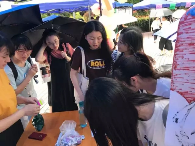 在“为展示品投票”的环节中,我们前期征集了以“遇见更美的自己”为主题的海报、手抄报等作品并给予展出,由来参与活动的同学以一人一票的投票制度为展品进行现场投票。