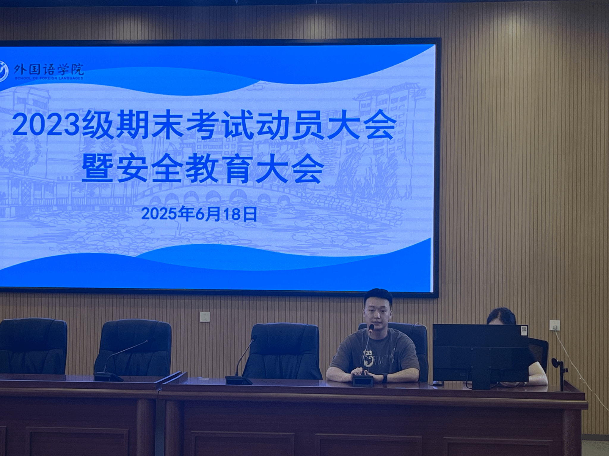 (本网讯 王素芳 李政锴)为引导学生积极备战期末考试,强化考风考纪,并提升学生假期安全意识,外国语学院于6月18日下午在博雅楼东三会议室,分别组织2023级、2024级全体学生召开了2025年春季学期期末考试动员大会暨安全教育大会。