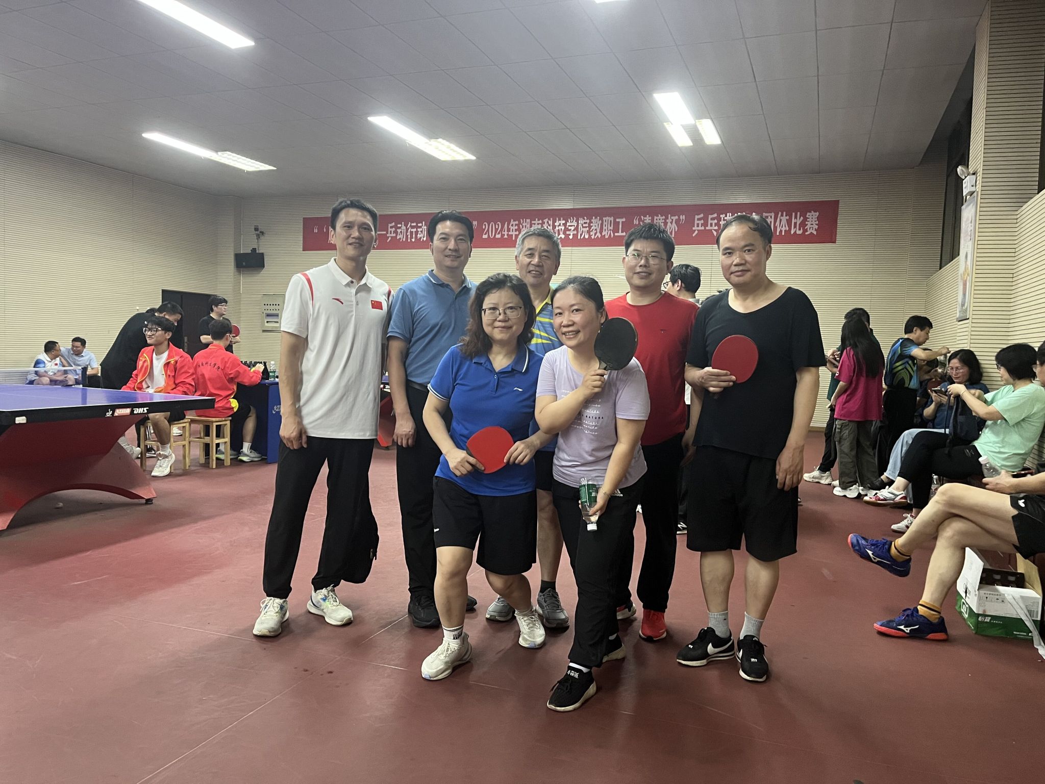 (本网讯陈小峰)近日,经过12天的艰苦训练和3天的高强度比赛,外国语学院教职工乒乓球代表队在学校乒乓球比赛中以出色的表现荣获全校第六名。