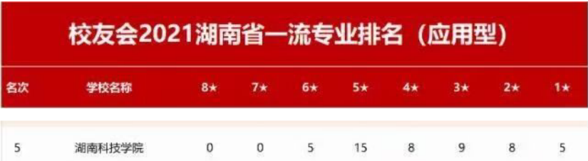 本网讯 由全国第三方大学评价机构艾瑞深校友会网(http://cuaa.net/)独家撰写、科学出版社正式出版发行的《2021校友会中国大学排名—高考志愿填报指南》最新发布2021校友会中国一流专业排名、2021湖南省一流专业排名和2021湖南省各学科门类一流专业排名。在2021湖南省一流专业排名(应用型)中,我校位居第5。外国语学院英语专业在全国排名第5,为“六星”级专业(中国顶尖应用型专业);日语专业在全国排名第7,为“五星”级专业(中国一流应用型专业)。