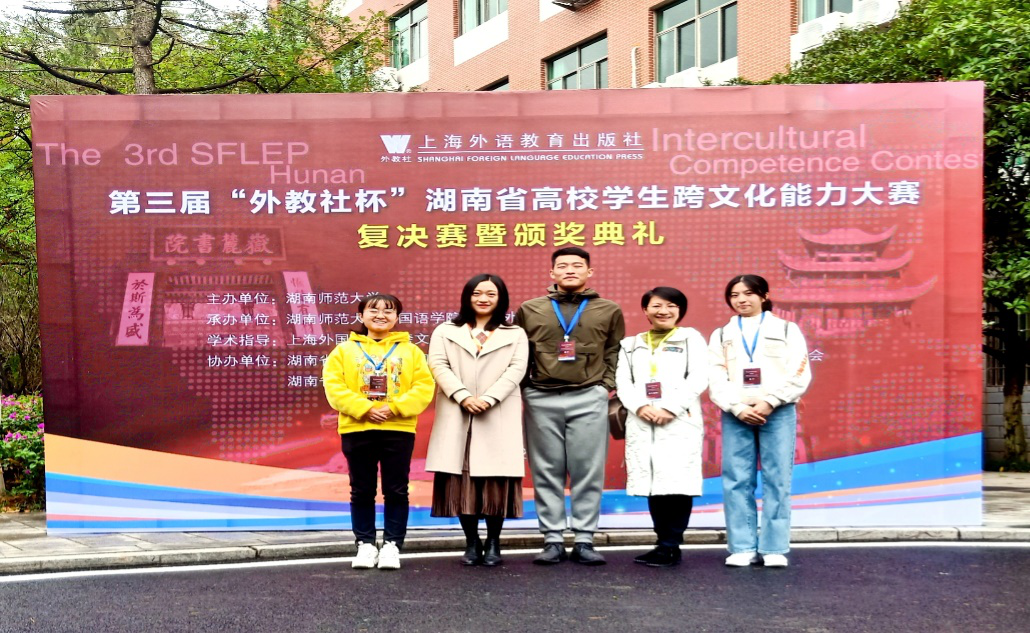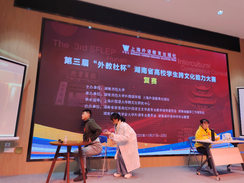 (通讯员 陶瑶)11月21日至22日,第三届“外教社杯”湖南省高校学生跨文化能力大赛在湖南师范大学外国语学院举行。经过省内各高校的初赛选拔,来自国防科技大学、湖南大学、湖南师范大学、中南大学等43个参赛队进入到复决赛环节。我校由外国语学院廖海燕老师和黄昊文老师指导的团队荣获三等奖,团队成员包括:英语师范专业龙玉芝同学、陶瑶同学和数媒专业项麒睿同学。