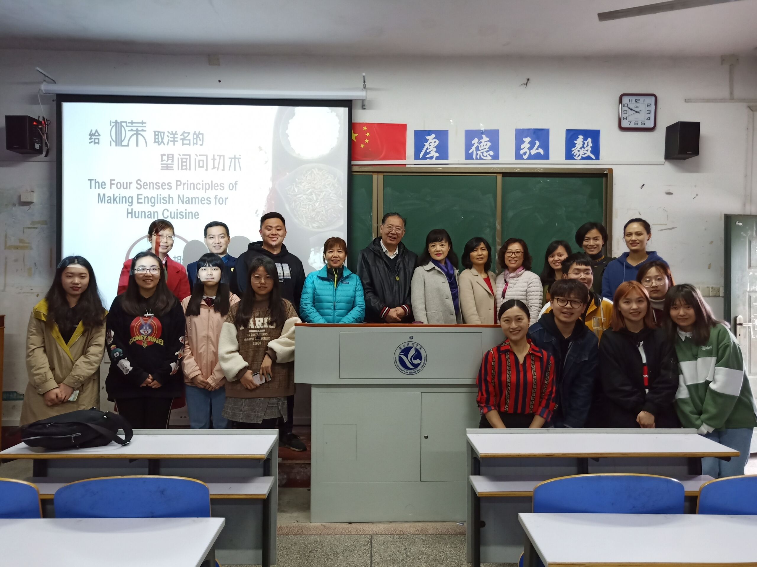本网讯 2019年4月1日,我院教师胡维为美洲湖南永州同乡会代表们上了一堂精彩的湘菜菜名翻译公开课。